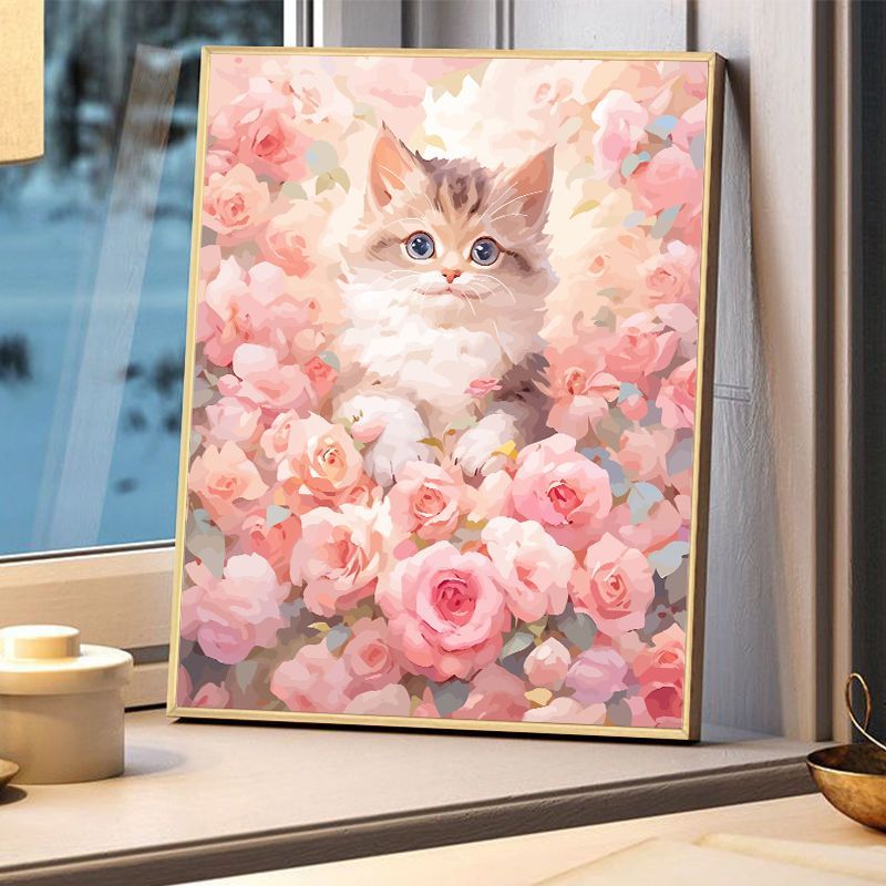 Victory✨-30*40cm/40*50cm-ภาพวาดสีน้ํามันดิจิตอล รูปแมว ดอกไม้ สําหรับตกแต่งบ้าน diy-ระบายสีตามตัวเลข-ภาพจิตรกรรมสีน้ํามันลาย--ภาพวาดระบายสีตามตัวเลข--ภาพระบายสีตามตัวเลข --สีระบายสีตามตัวเลข--ระบายสีตามตัวเลข จีน--ระบายสีตามตัวเลข ดอกไม้-