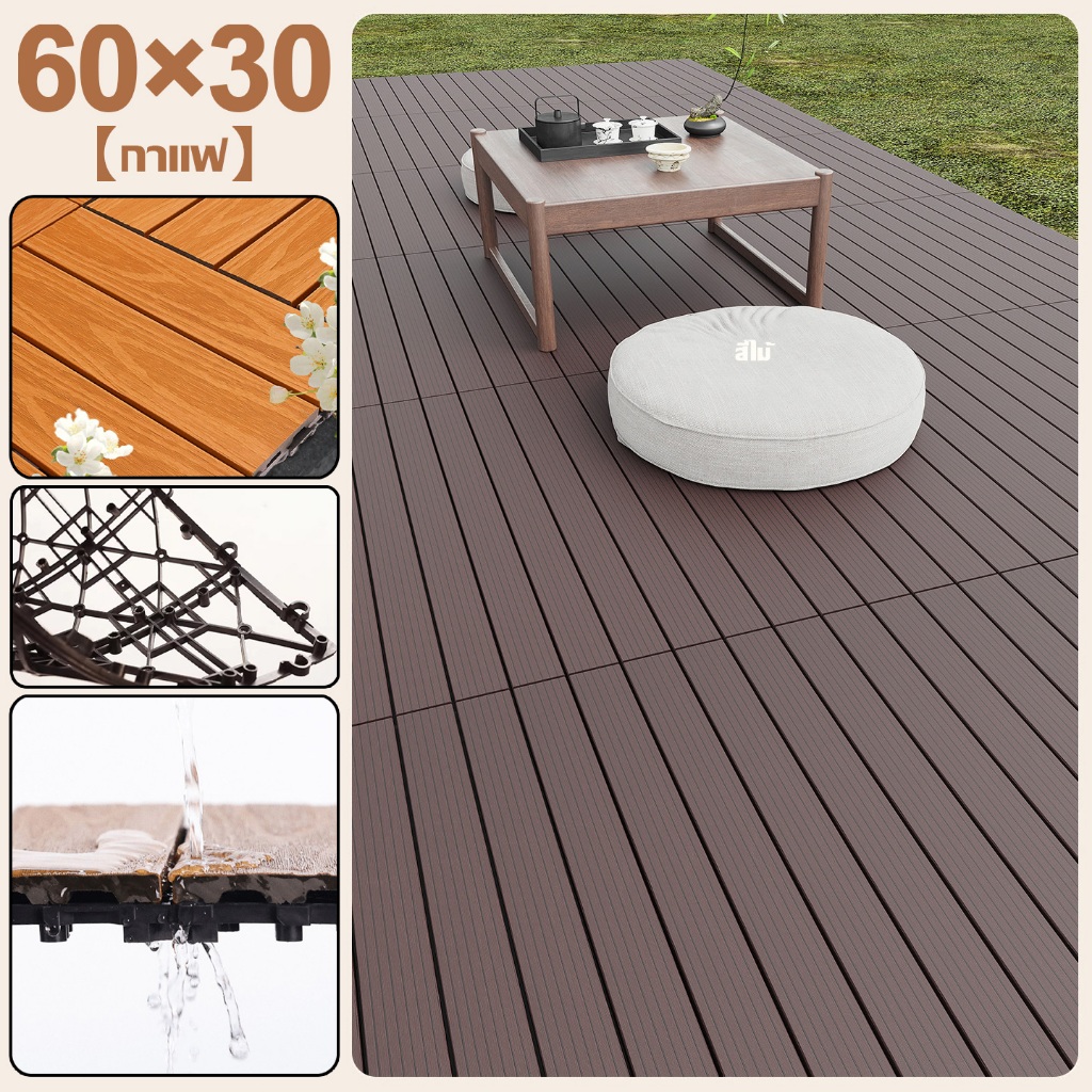 แผ่นไม้ปูพื้น แผ่นไม้ตกแต่งสวน60x30x2cm แผ่นปูพื้นสวน ปูระเบียง พื้นไม้สำเร็จรูป ไม้เทียมปูพื้น ไม้ปูพื้นสวน แผ่นแต่งสวน