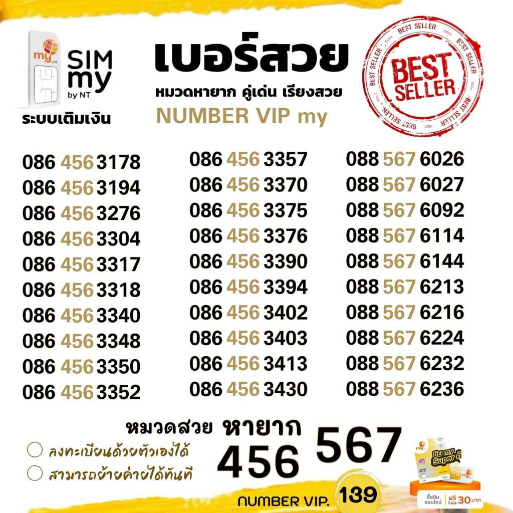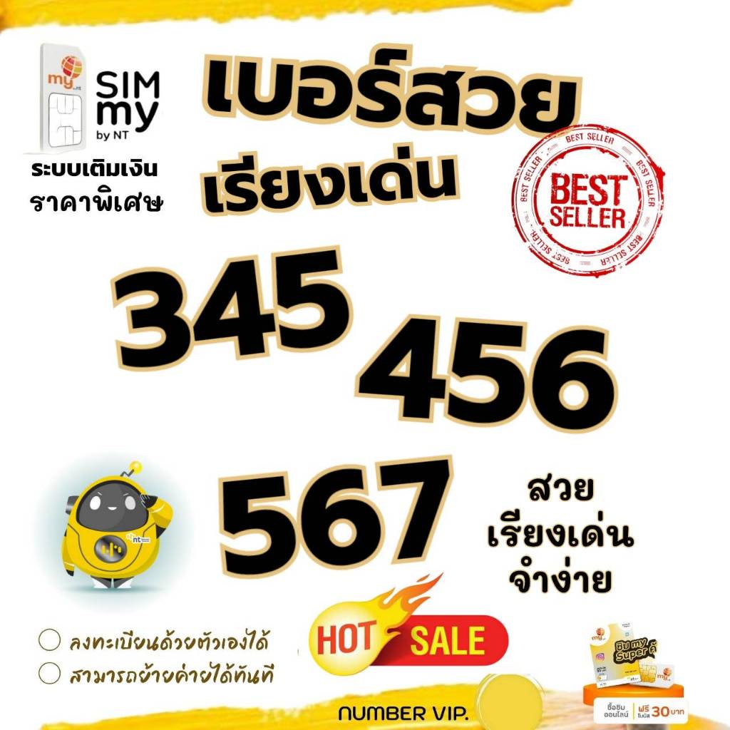 (my.55)เบอร์สวย เบอร์เรียง " 345, 456, 567 " ราคาพิเศษ ระบบเติมเงิน สามารถย้ายค่ายได้ทันที