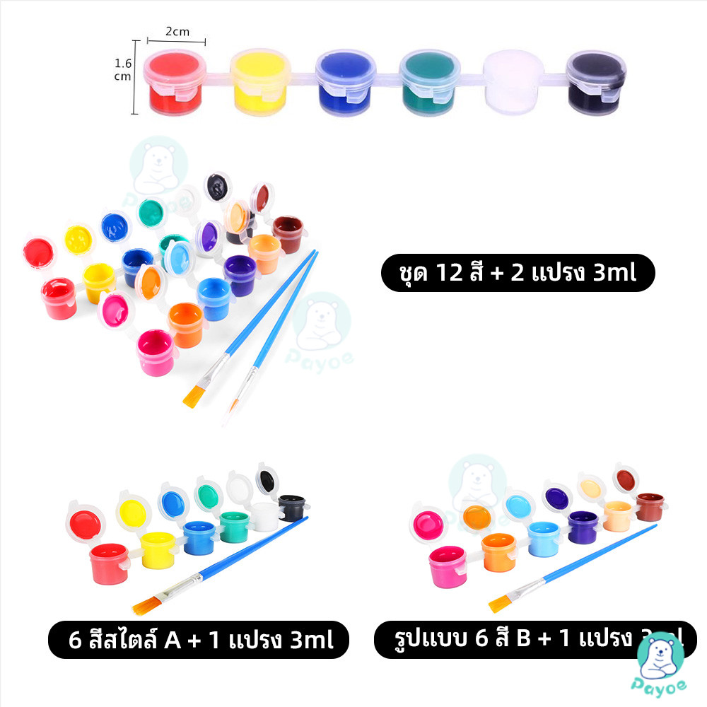 PAYOE สีอคริลิค สีสันสดใส สีน้ำ ชุดสีอะคริลิคพร้อมใช้ สีโปสเตอร์ สี 6 สี/สี 12 สี
