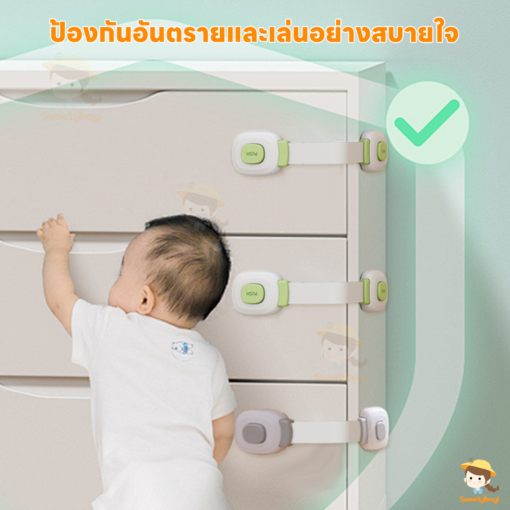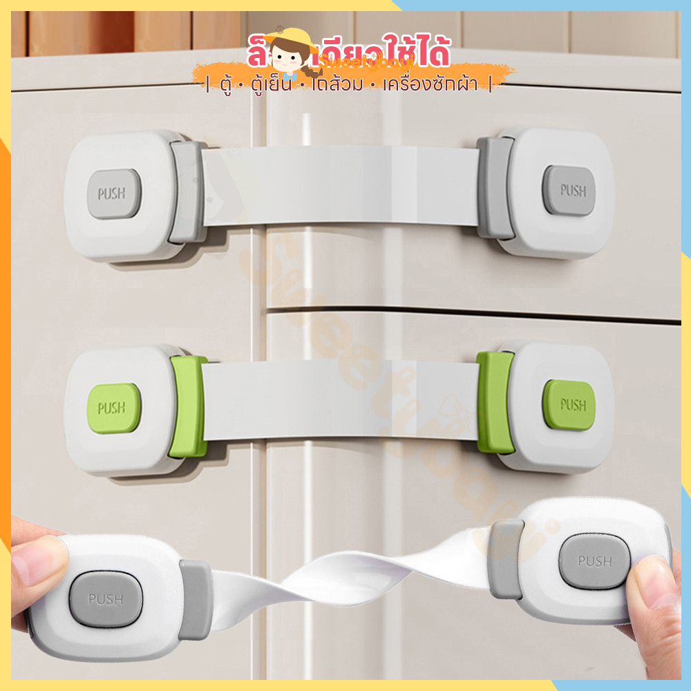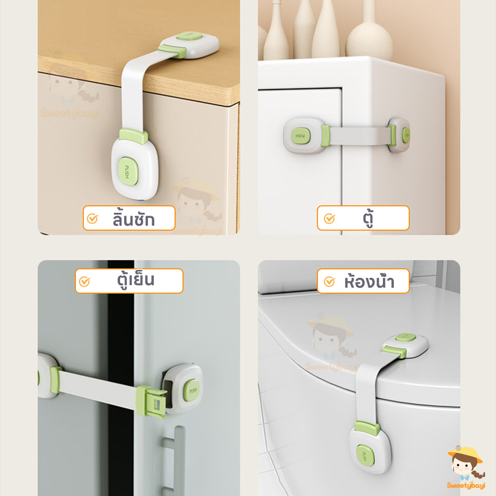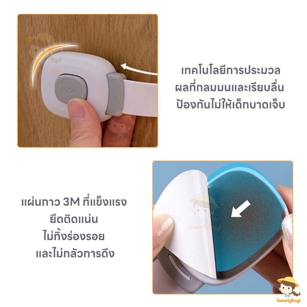 SWEETYBAYI สายล็อคตู้ ตัวล็อคลิ้นชัก ไม่ต้องเจาะ สายล็อคประตู ติดได้ ที่ล็อคตู้