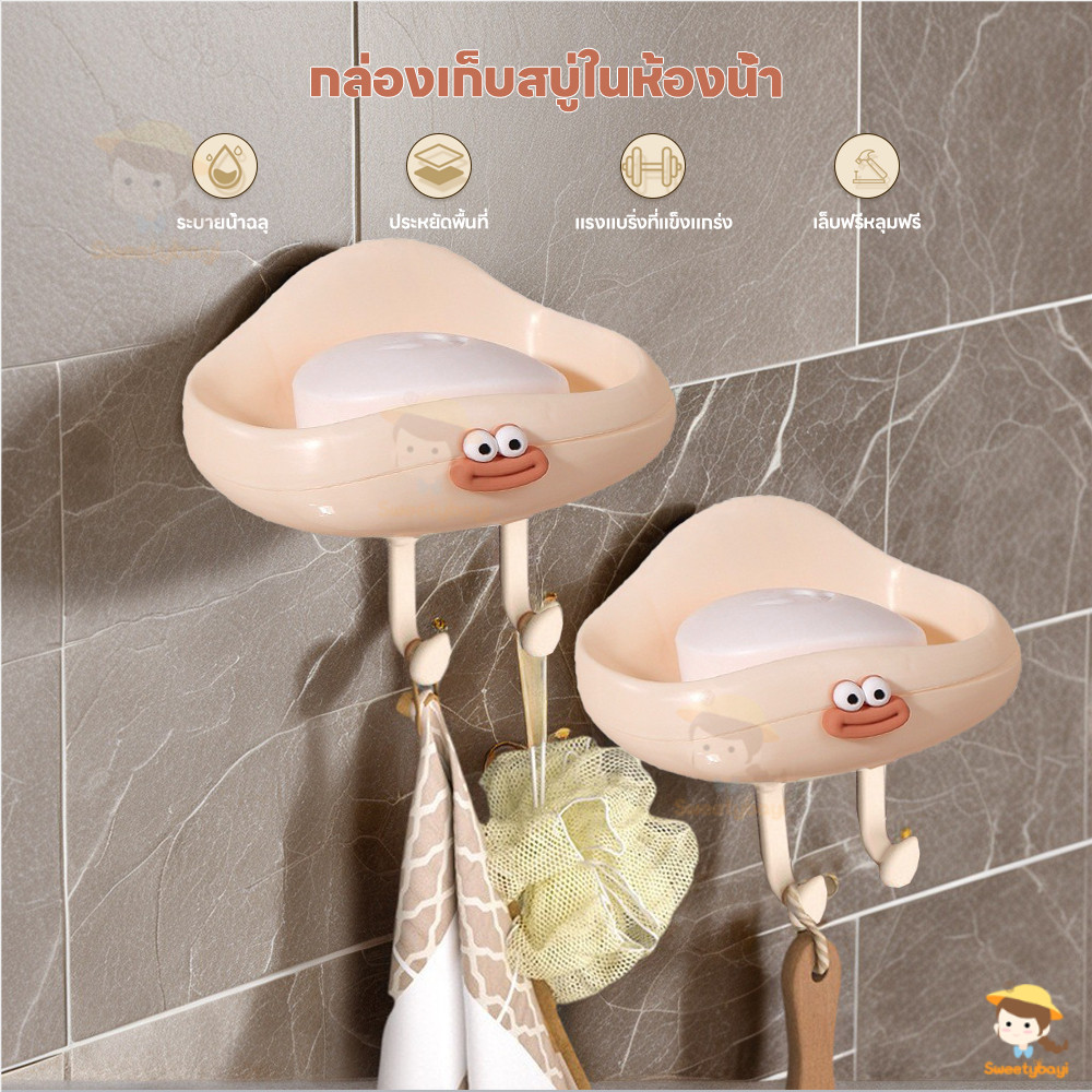 SWEETYBAYI กล่องสบู่เมฆน่ารัก กล่องสบู่ติดผนัง ระบายน้ํา ที่วางสบู่ก้อน ทนทาน กล่องสบู่