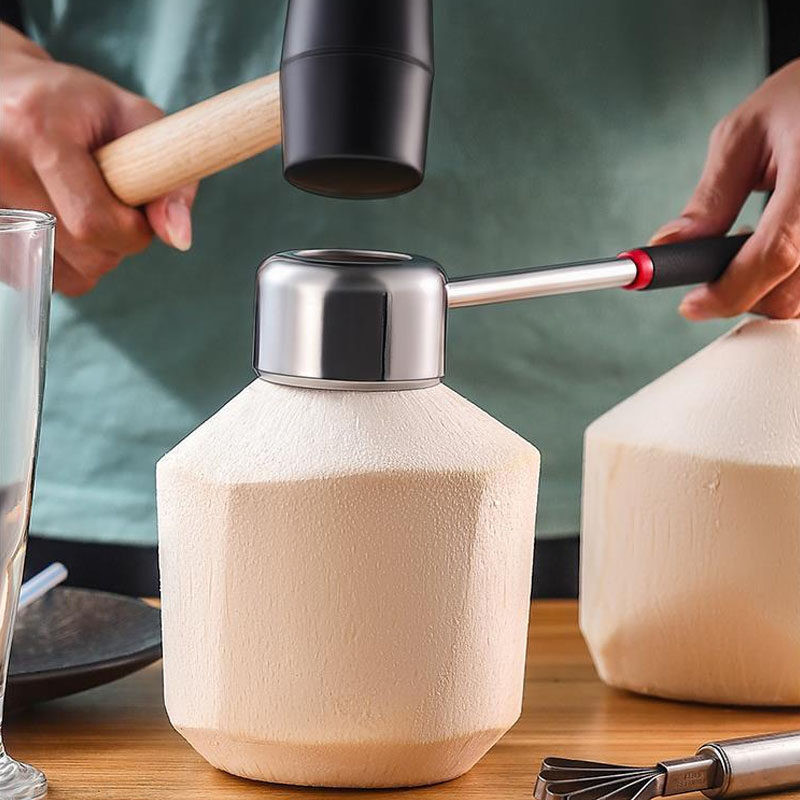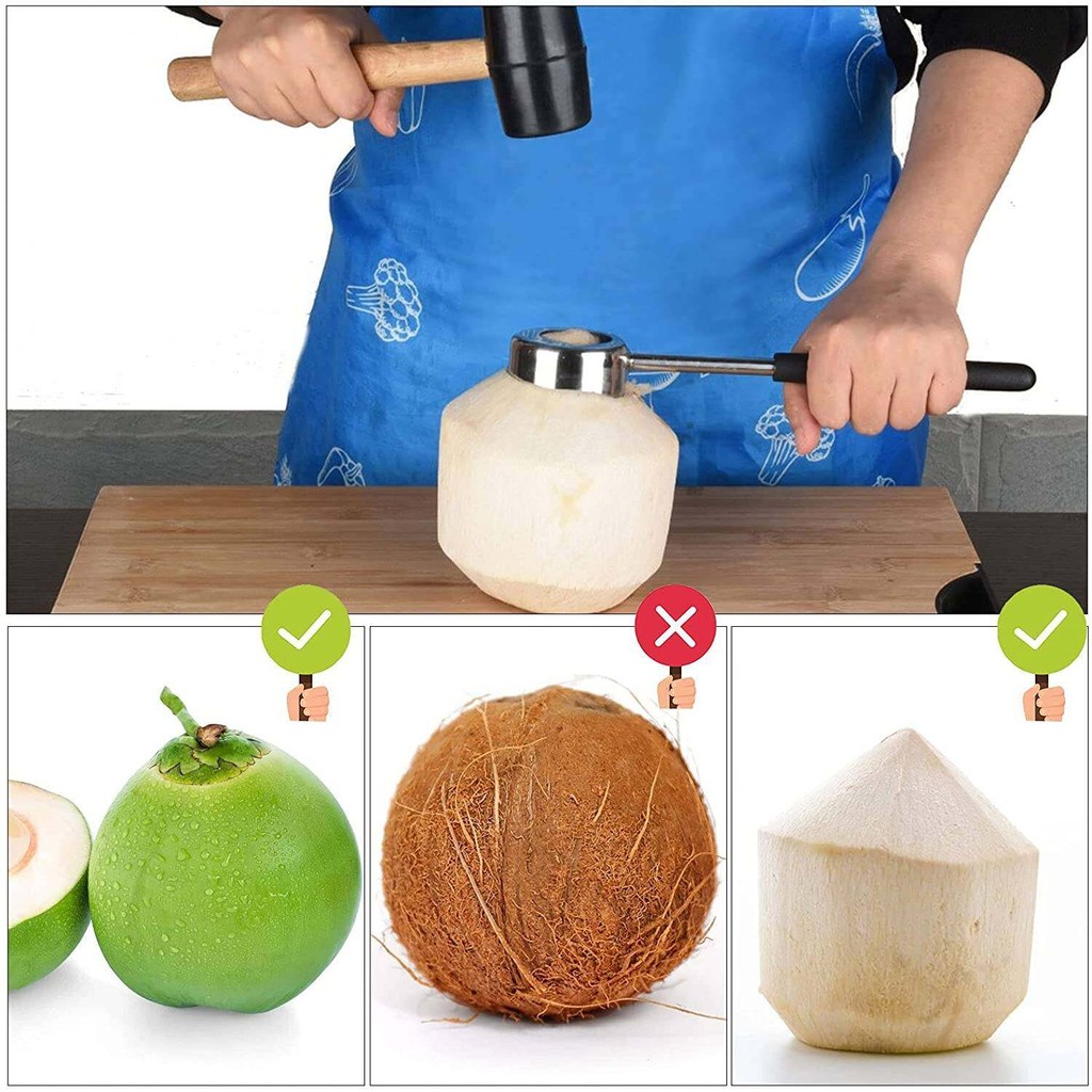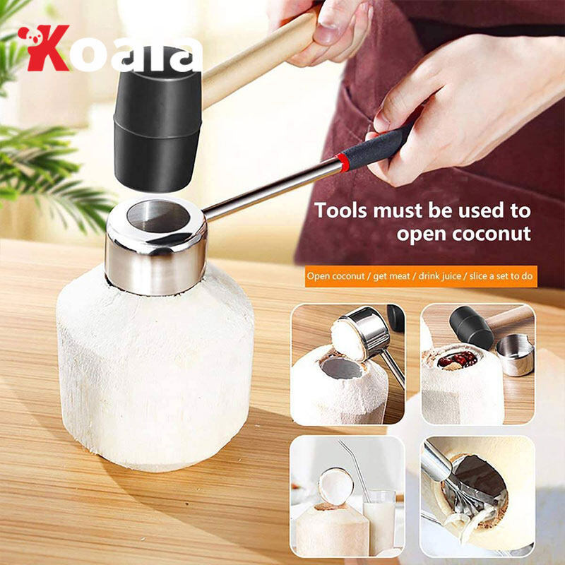 ที่เปิดมะพร้าว เซ็ท 3 ชิ้น (หนาพิเศษ) ที่เจาะมะพร้าว พร้อม ค้อนทุบ ที่ขูดมะพร้าว อุปกรณ์เจาะมะพร้าว สแตนเลส