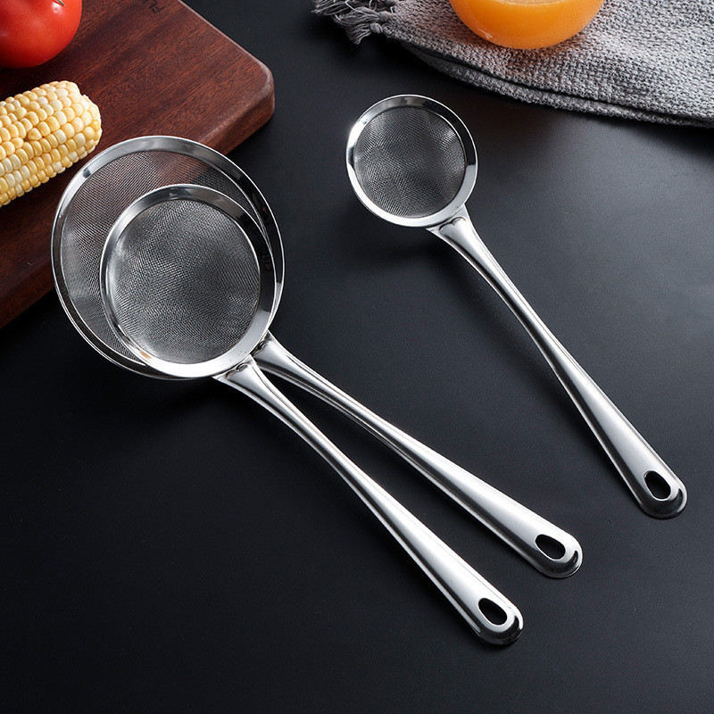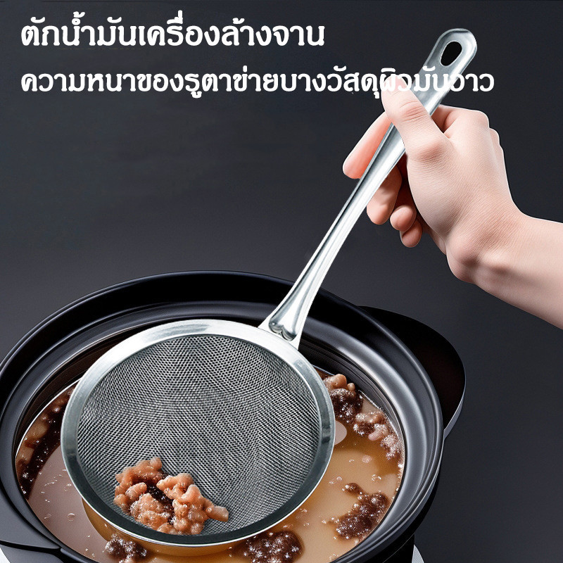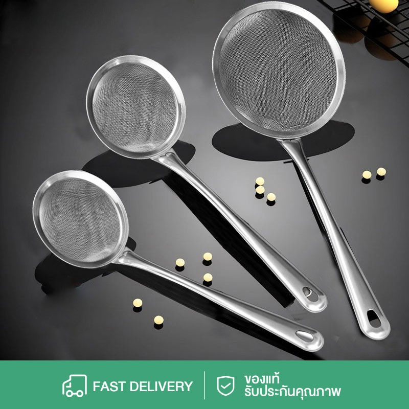 กระชอนตักฟอง กระชอนตักของทอด ตะแกรงสแตนเลส ช้อนตักกากอาหาร 8/11/14/16/18 ซม.