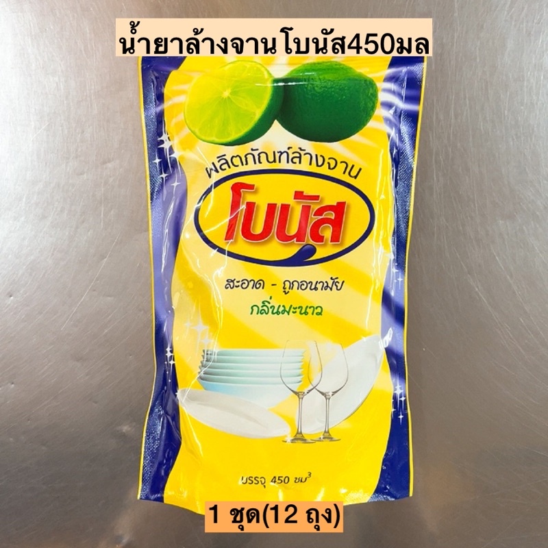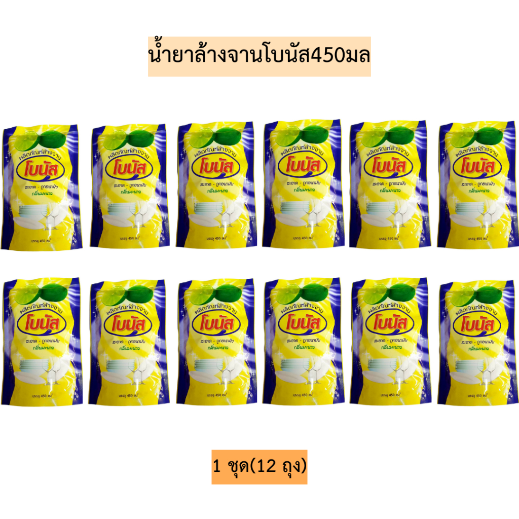 (12ถุง)น้ำยาล้างจานโบนัส450มล💛
