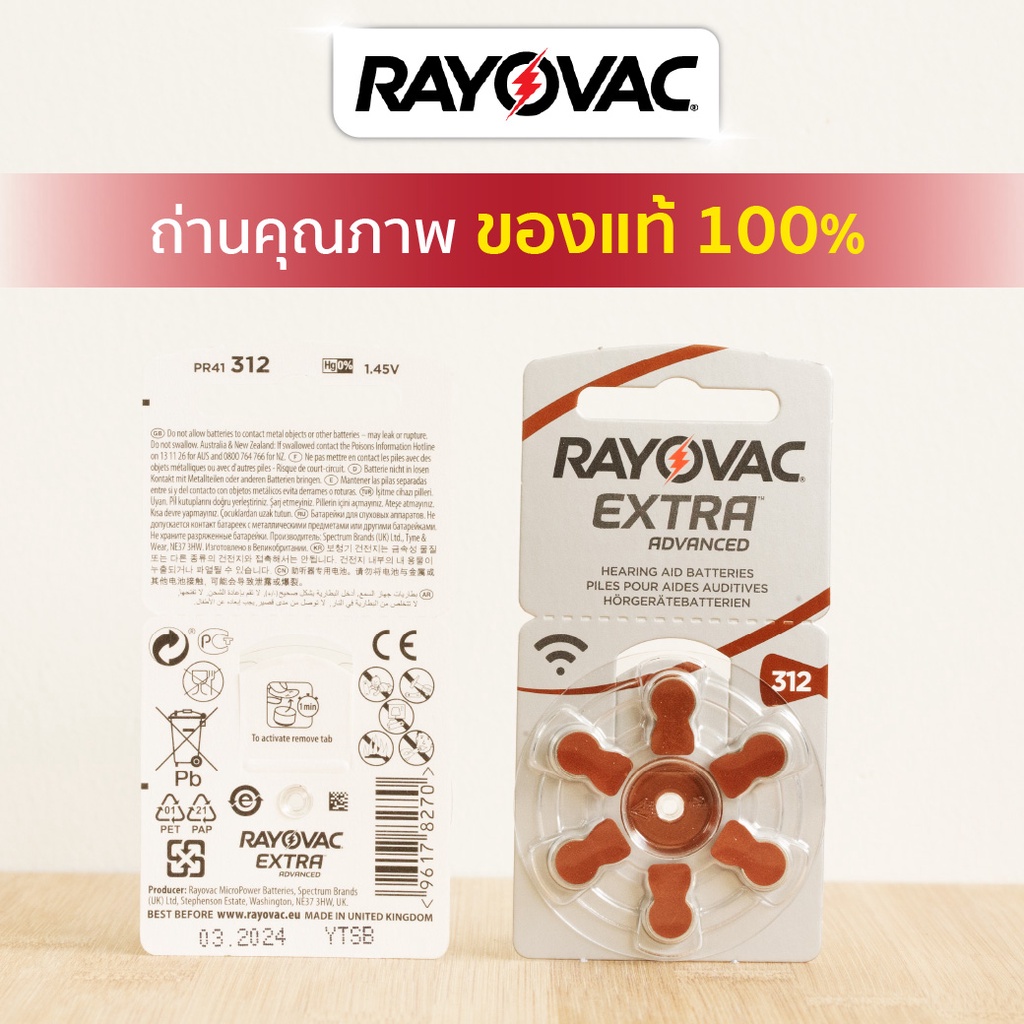 ถ่านเครื่องช่วยฟัง RAYOVAC เบอร์ A312 (แบบกล่องละ 10แพ็ค) ผลิตในประเทศอังกฤษ