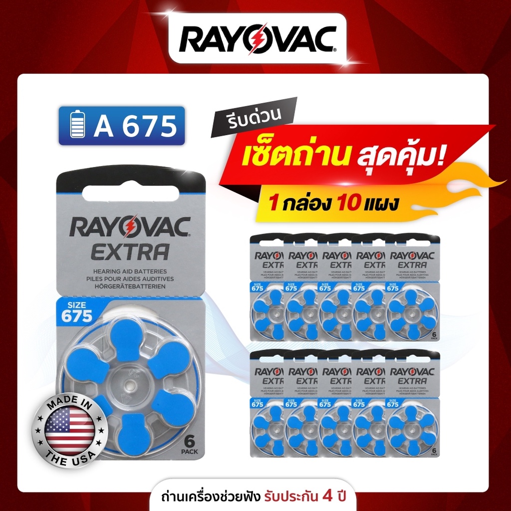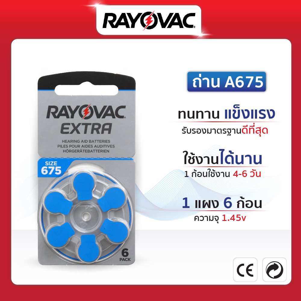 ถ่านเครื่องช่วยฟัง RAYOVAC เบอร์ A675 (แบบกล่องละ 10แพ็ค) ผลิตในประเทศอังกฤษ