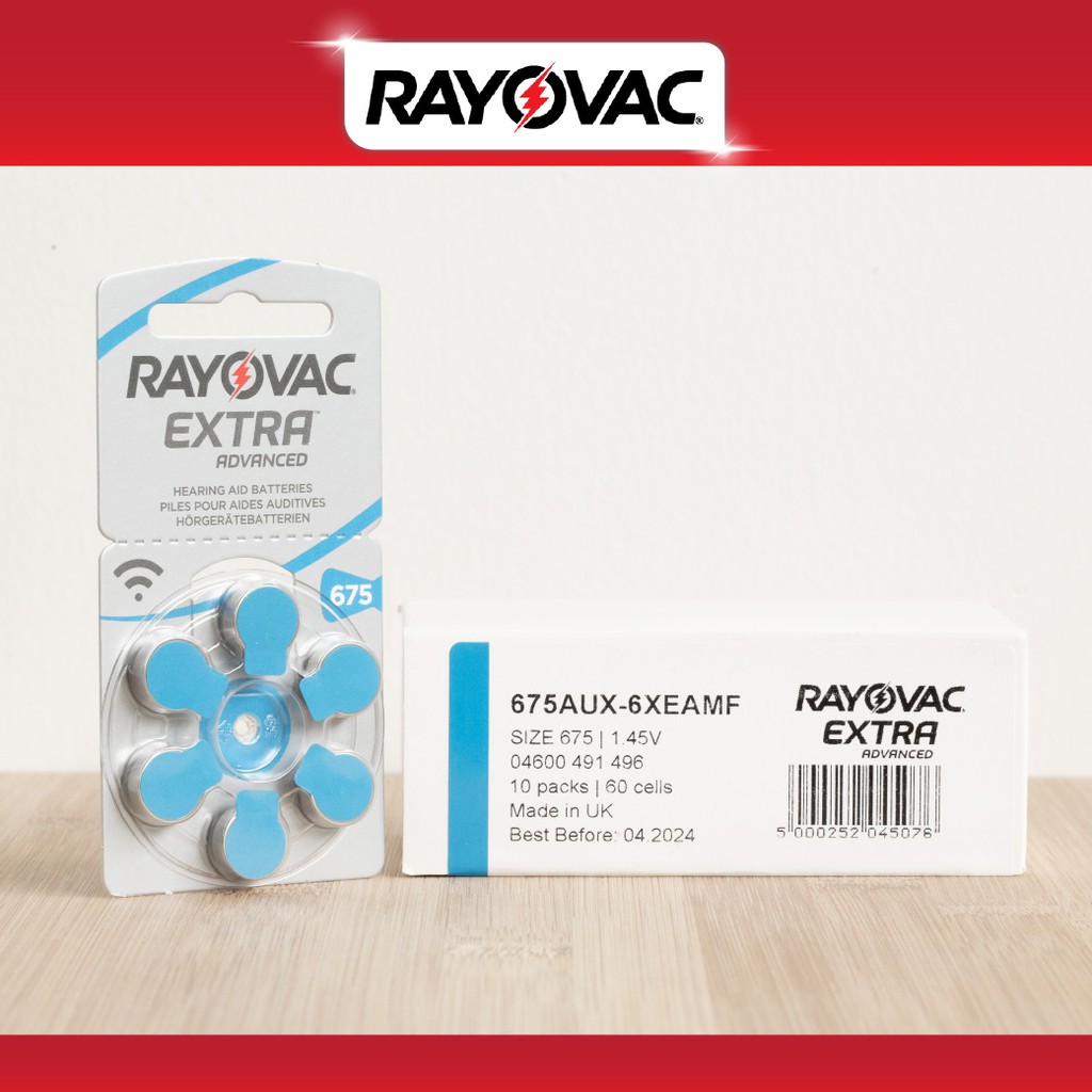 ถ่านเครื่องช่วยฟัง RAYOVAC เบอร์ 675 แพ็ค 6 ก้อน (แท้100%) ผลิตในอังกฤษ