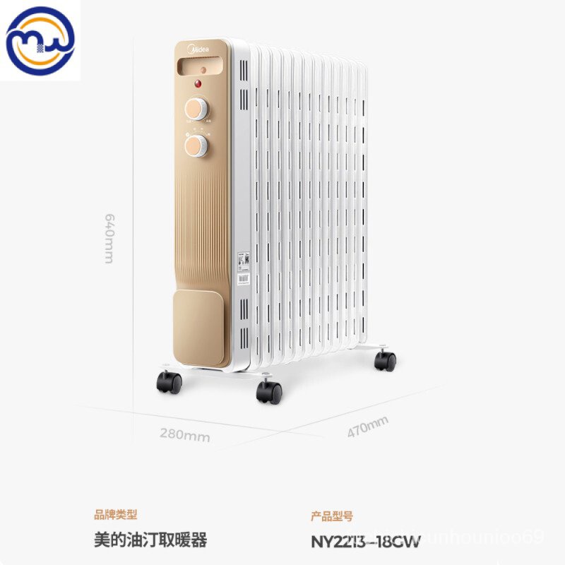 Midea ฮีตเตอร์หม้อน้ำไฟฟ้า13การอัพเกรดฟิล์มเครื่องทำความร้อนน้ำมันไฟฟ้าประหยัดพลังงานในพื้นที่ขนาดใหญ่NY2213-18GW JLQ5