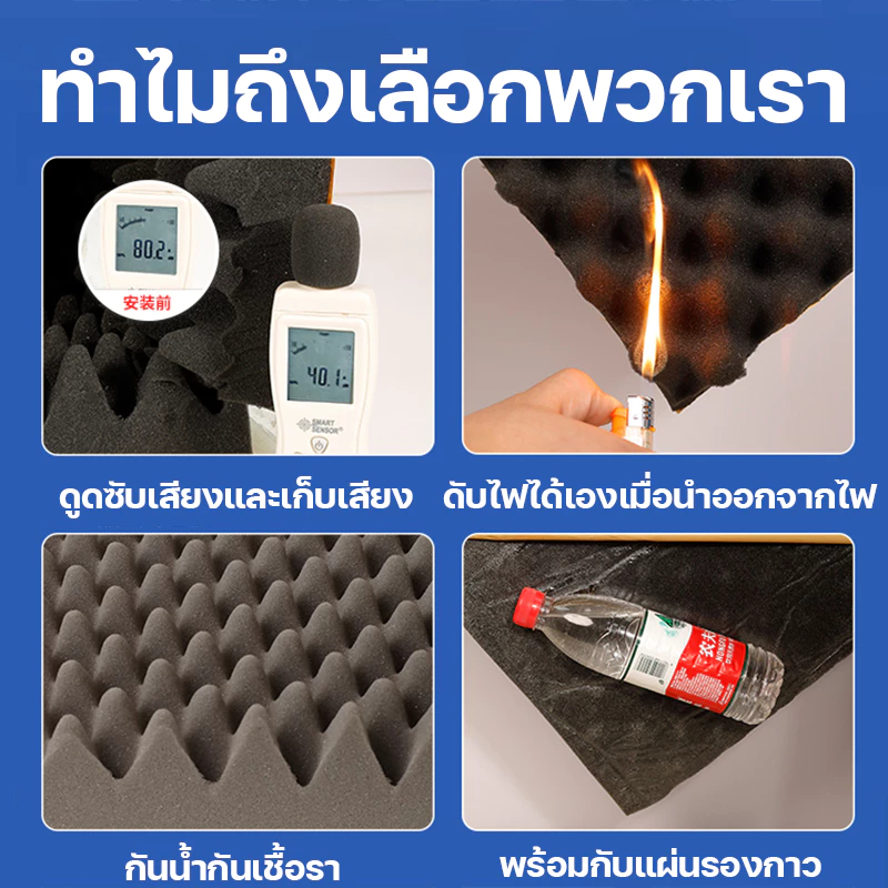 ผลกันเสียง 100% โฟมกันเสียง แผ่นซับเสียง ความหนาที่ 3.2cm แผ่นเก็บเสียง ทนไฟ กันน้ำ เก็บเสียง โฟมซับเสียง ติดตั้งง่าย