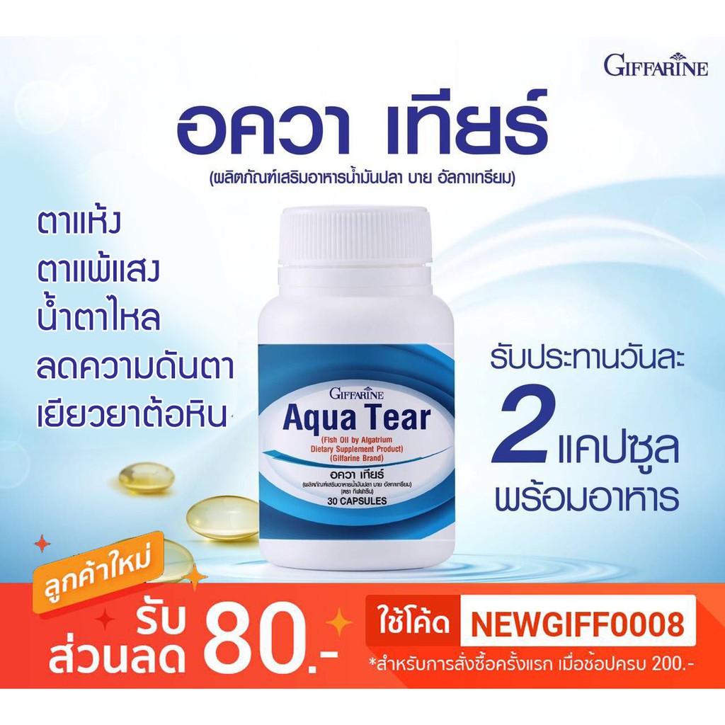 ดูแลดวงตา ตาแห้ง แพ้แสง น้ำตาไหล ลดความดันตา ป้องกันต้อลม ต้อหิน ดูแลด้วย Fish Oil Aqua Tear อควา เทียร์ กิฟฟารีน