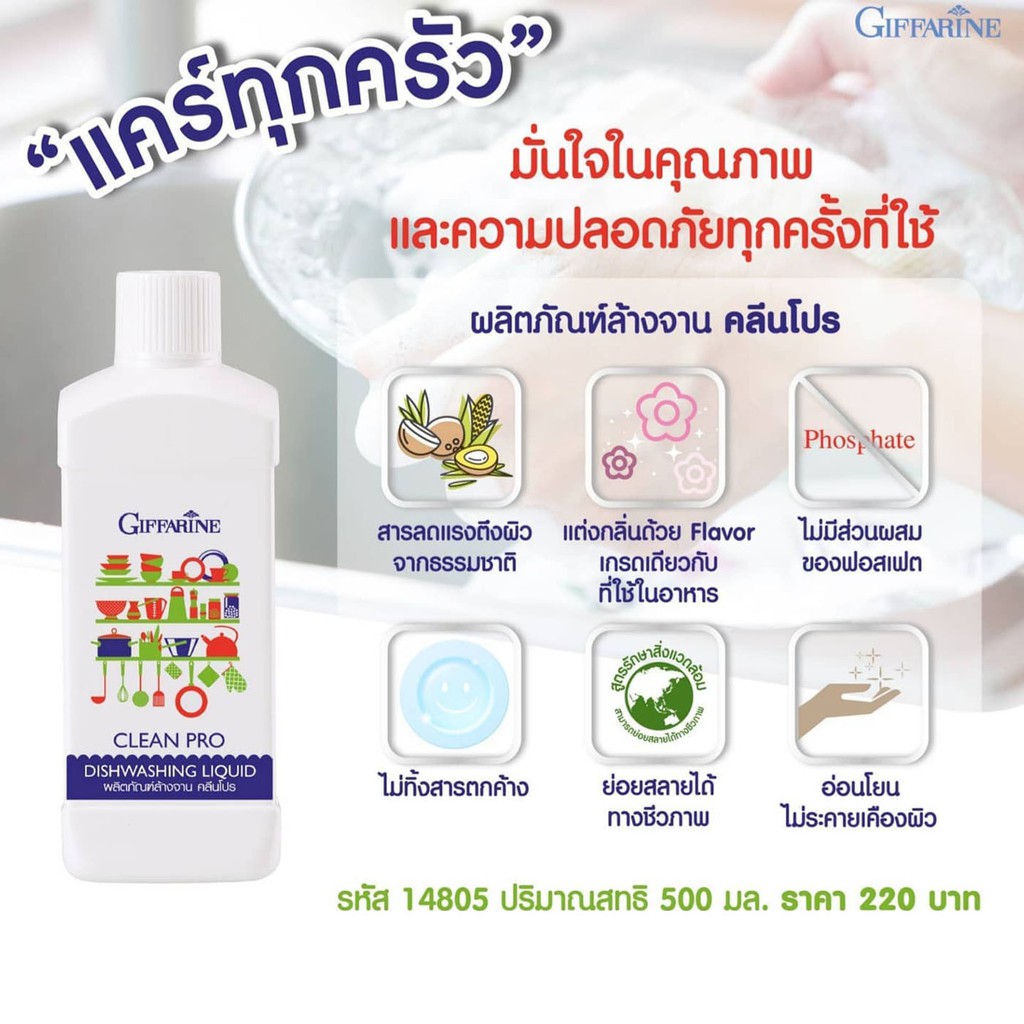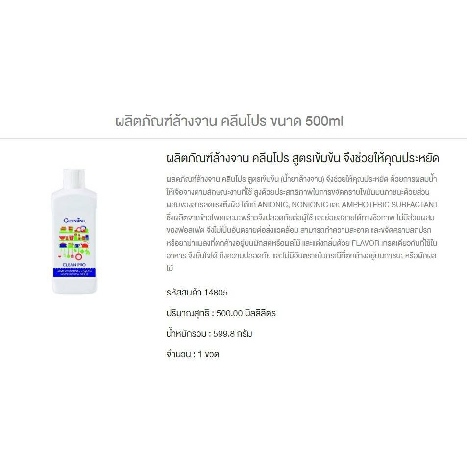 น้ำยาล้างจาน คลีนโปร สูตรเข้มข้นสารสกัดจากธรรมชาติ กิฟฟารีน