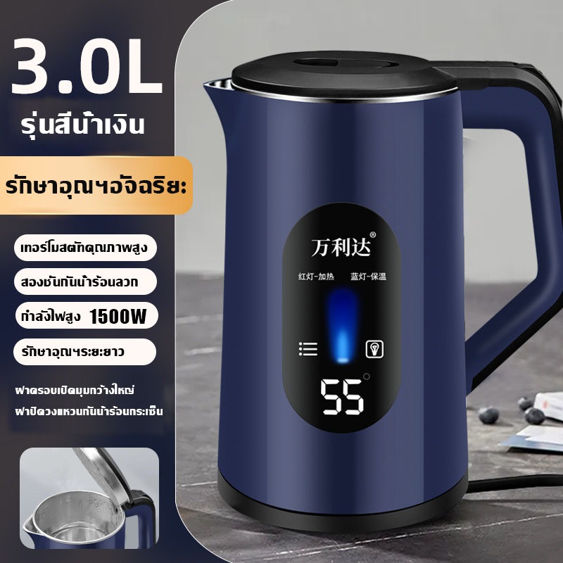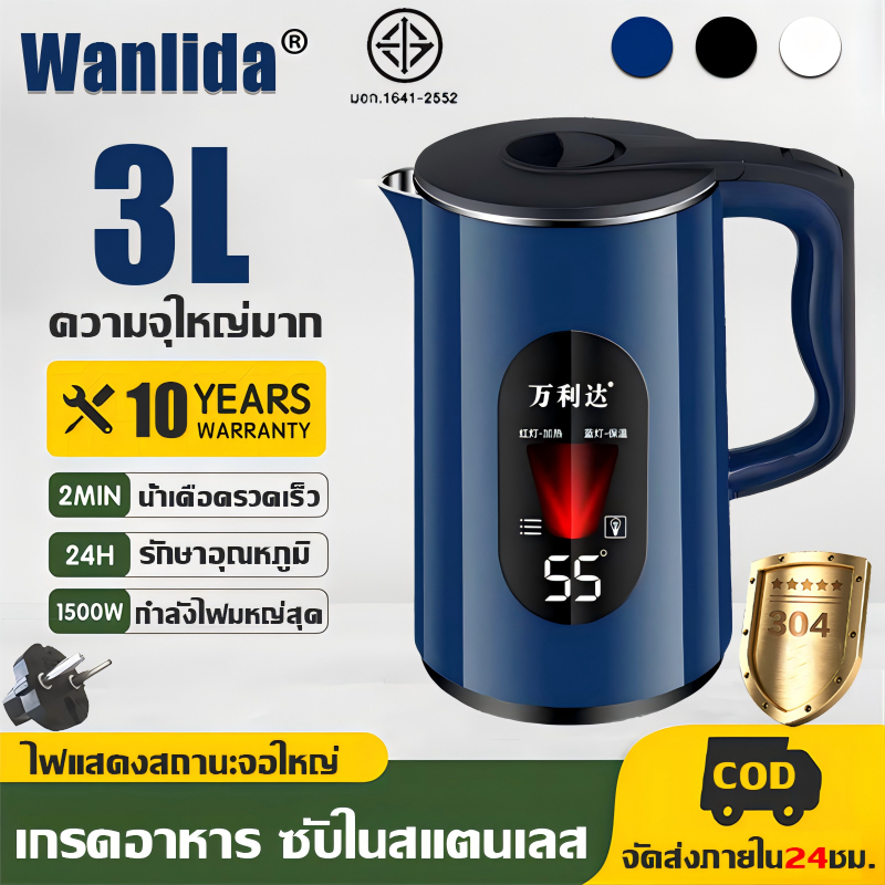 【รับประกัน10ป】Wanlida กาต้มน้ำไฟฟ้า กาน้ำร้อน 3L ตัดไฟอัตโนมัติ โนมัติประหยัดไฟ ปลอดภัย กาน้ำร้อนไฟฟ้า electric kettle