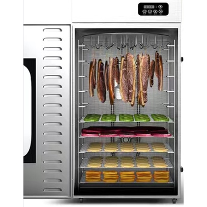 เครื่องอบเนื้อชั้นเดียวแบบใหม่ เครื่องเป่าลมแห้งสำหรับเนื้อปลาหมูเบคอนไส้กรอกไก่แห้ง เครื่องเ ป่าไส้กรอก