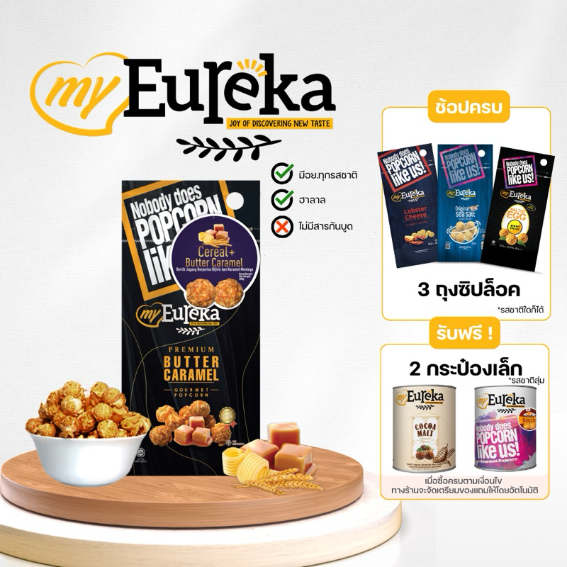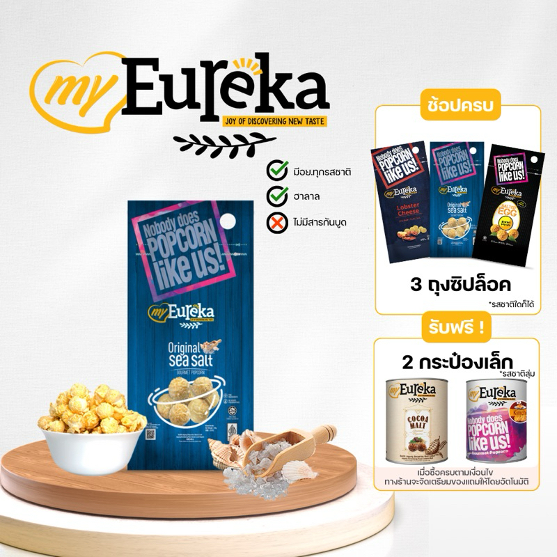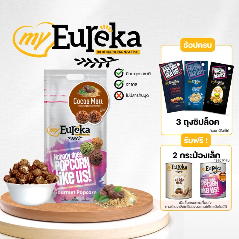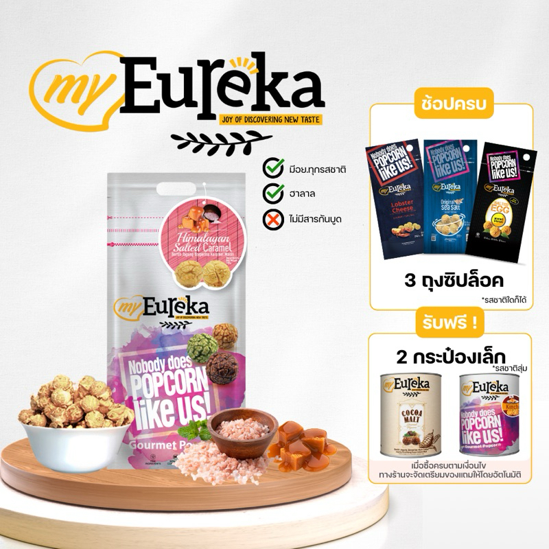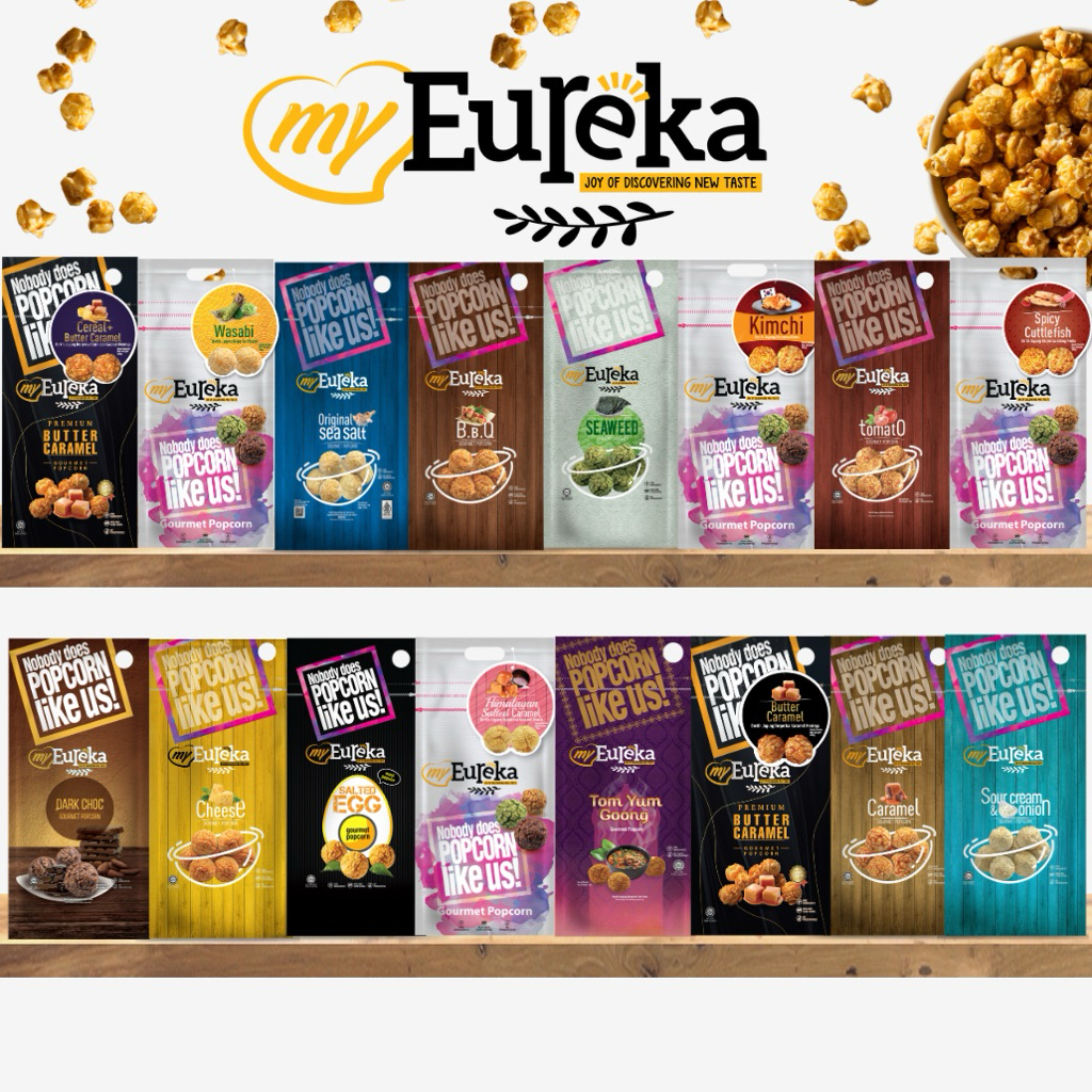 [ซื้อ3แถม2กระป๋องเล็ก]Popcorn Eureka Aluminium Pack 140g. - Multiple Flavours | ยูเรก้าป๊อบคอร์น ถุงซิปล็อค