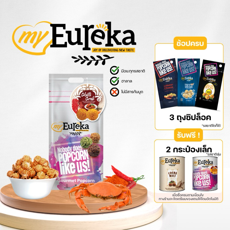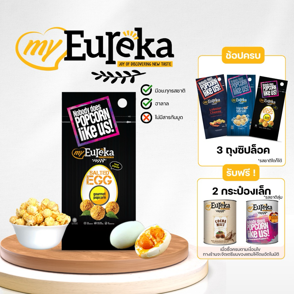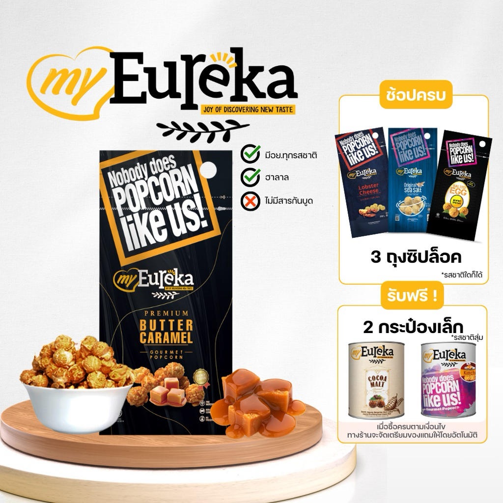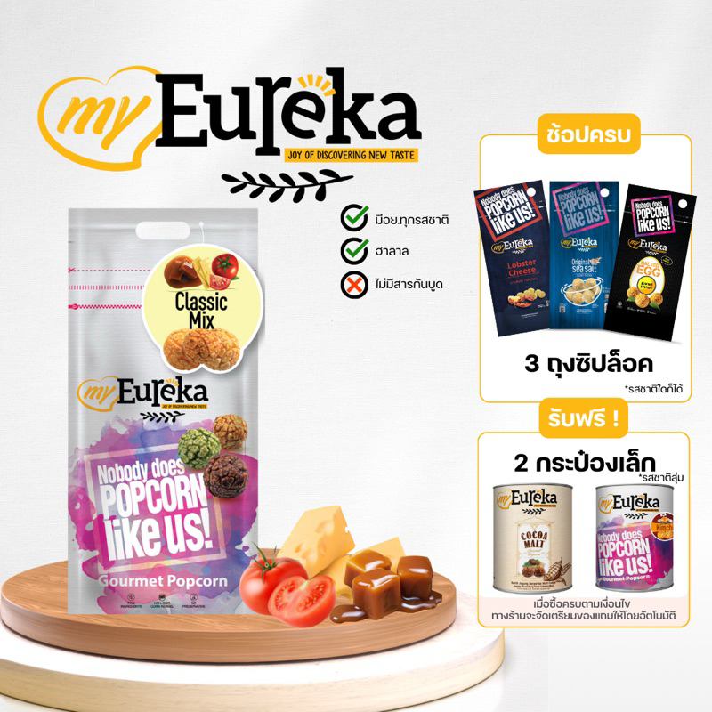 [ซื้อ3แถม2กระป๋องเล็ก]Popcorn Eureka Aluminium Pack 140g. - Multiple Flavours | ยูเรก้าป๊อบคอร์น ถุงซิปล็อค