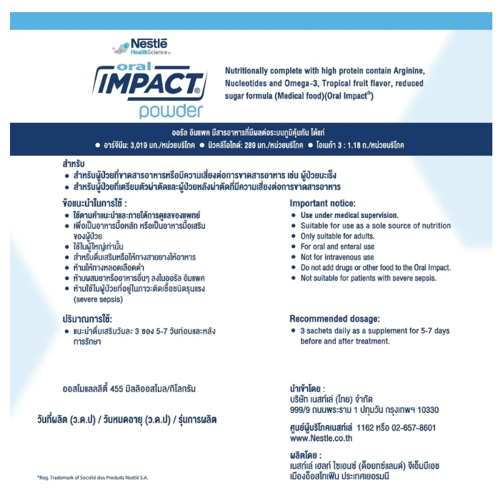 !Oral IMPACT ออรัล อิมแพค อาหารเสริมทางการแพทย์ ขนาดกล่อง 370 กรัม (5 ซอง)