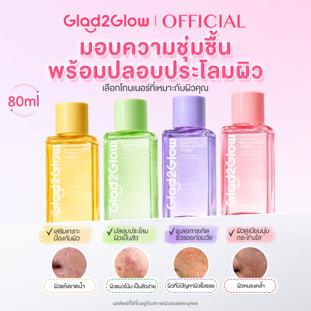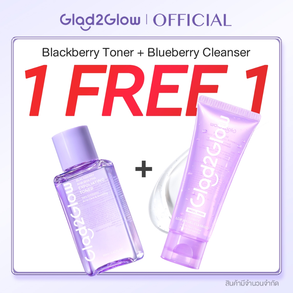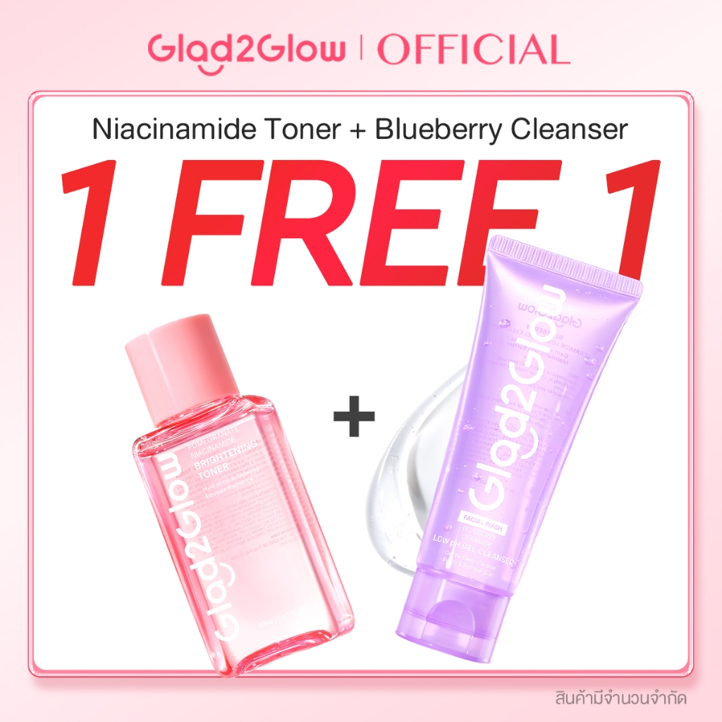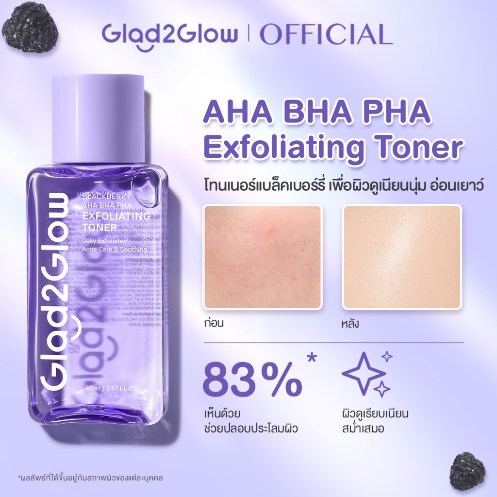 Glad2Glow โทนเนอร์แพด โทนเนอร์ น้ำตบ Niacinamide Brightening Toner Centella Ceramide Blackberry AHA BHA PHA+Cleanser