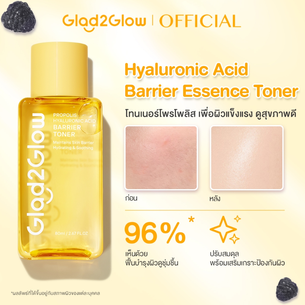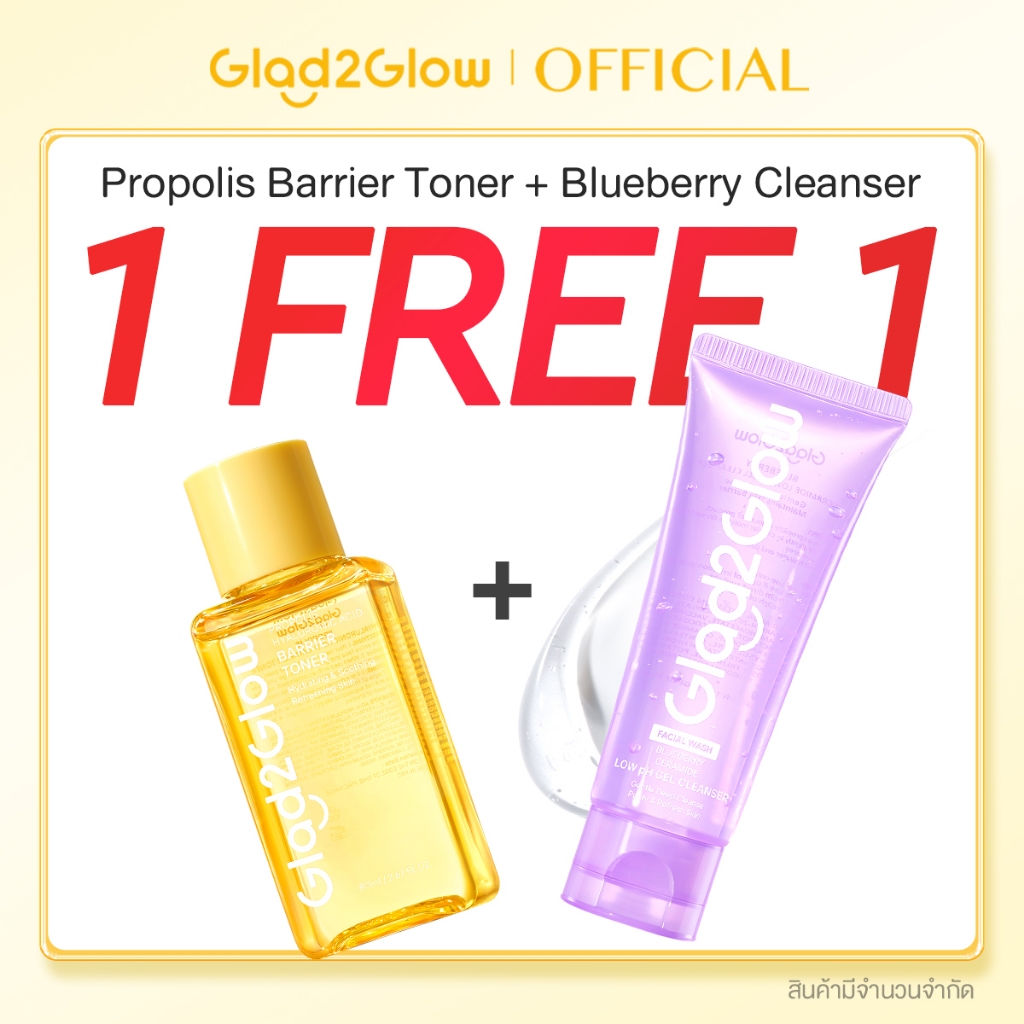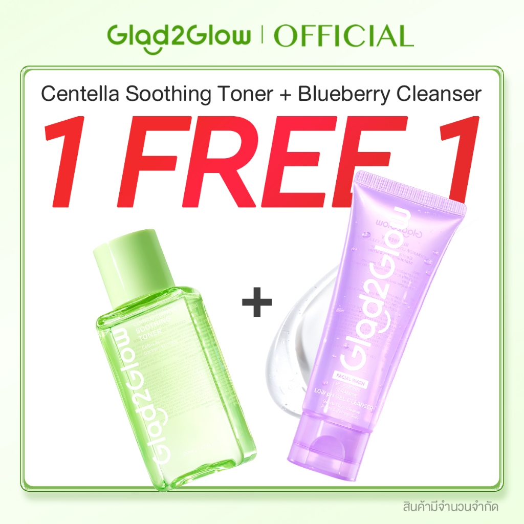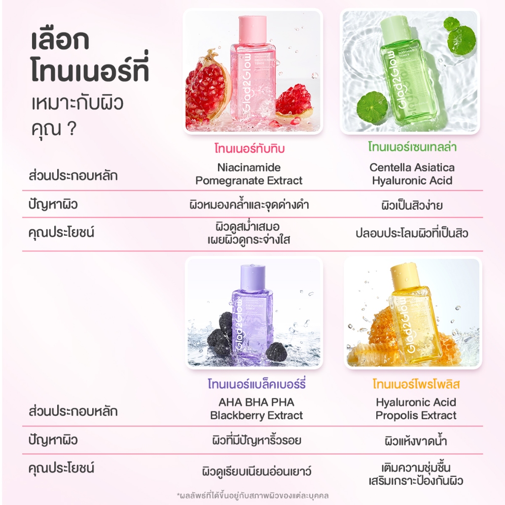 Glad2Glow โทนเนอร์แพด โทนเนอร์ น้ำตบ Niacinamide Brightening Toner Centella Ceramide Blackberry AHA BHA PHA+Cleanser