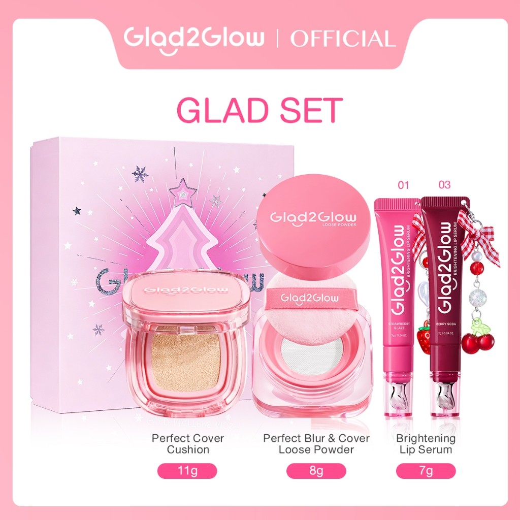 【Gift】Glad2Glow Moisturizer Serum+Cushion+Lip Serum ชุ่มชื้น ขาวใส แนบเนียนติดทน ครีมทาหน้า