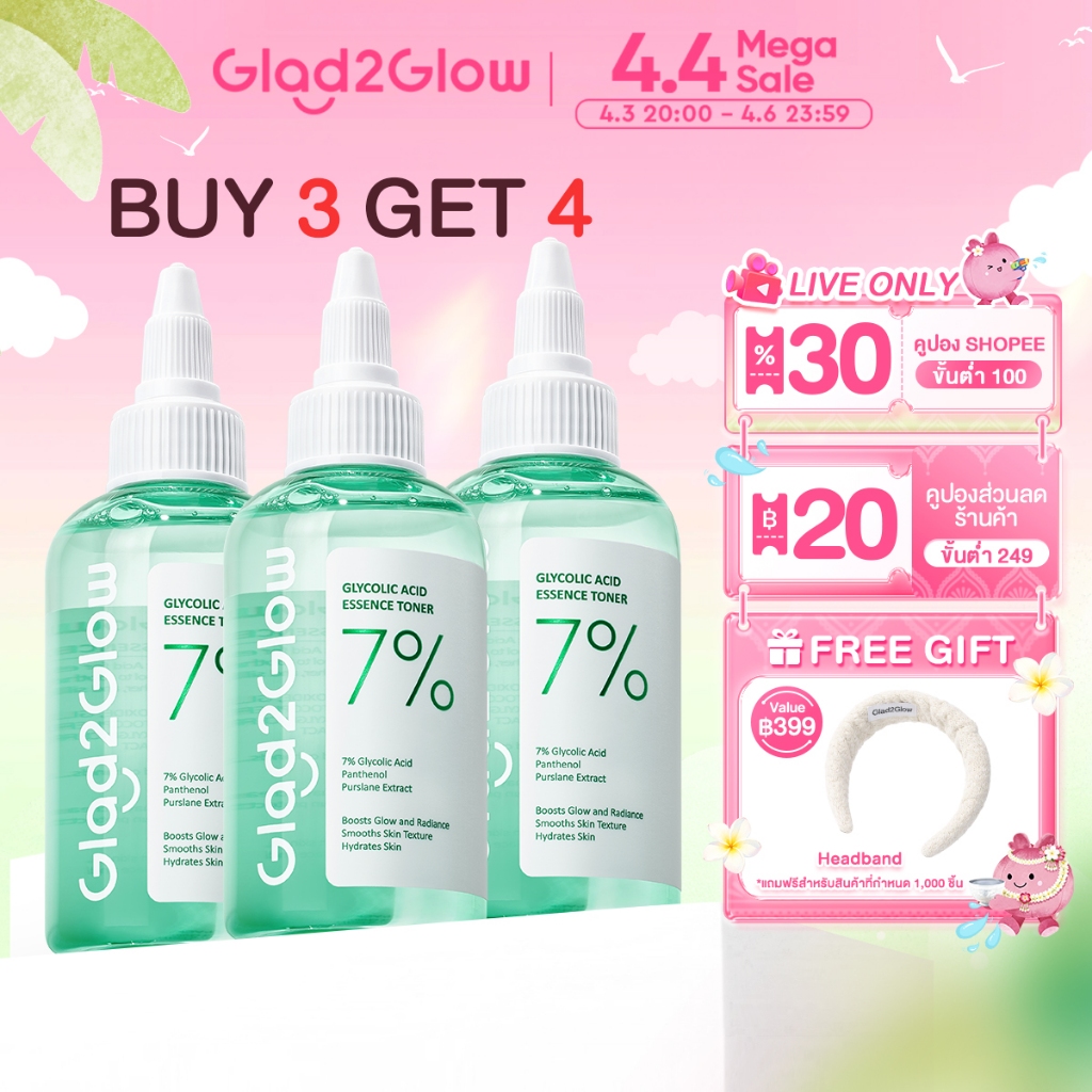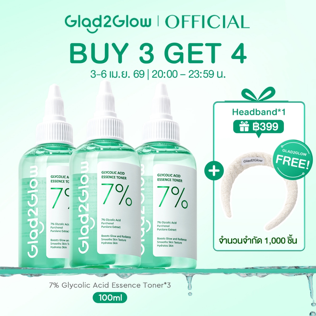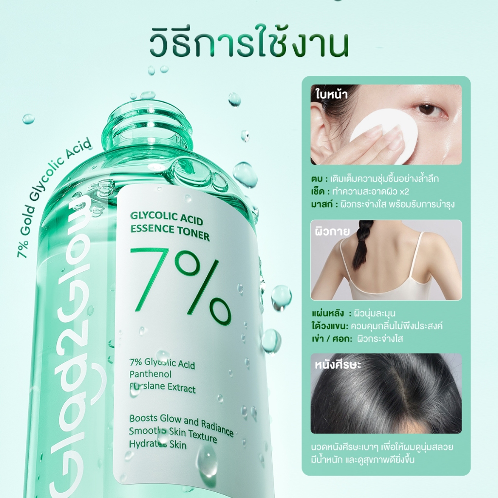 【NEW】Glad2Glow โทนเนอร์ การผลัดเซลล์ผิว ลดรูขุมขน ผิวขาวใสเรียบเนียน 7% Glycolic Acid Essence Toner 100ml