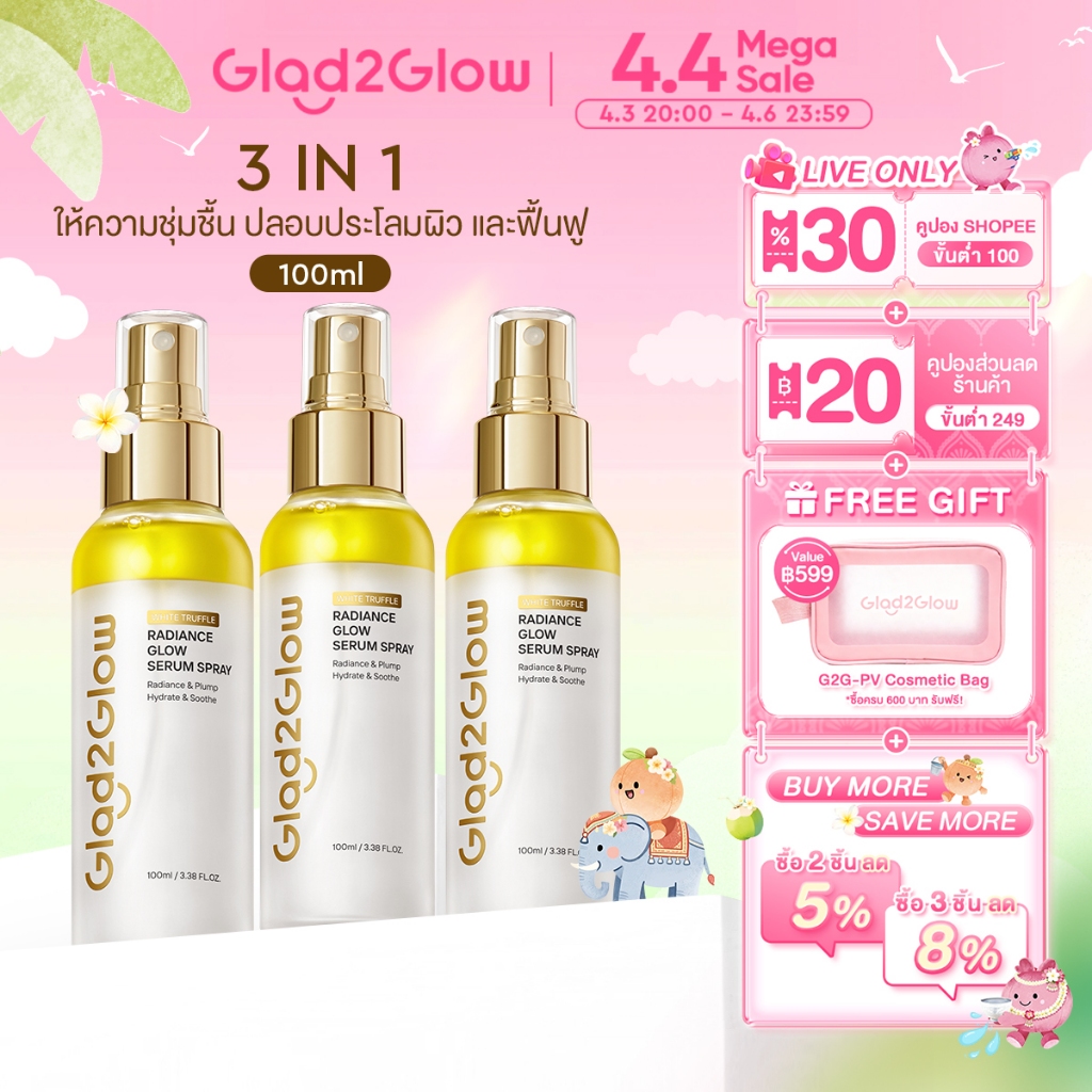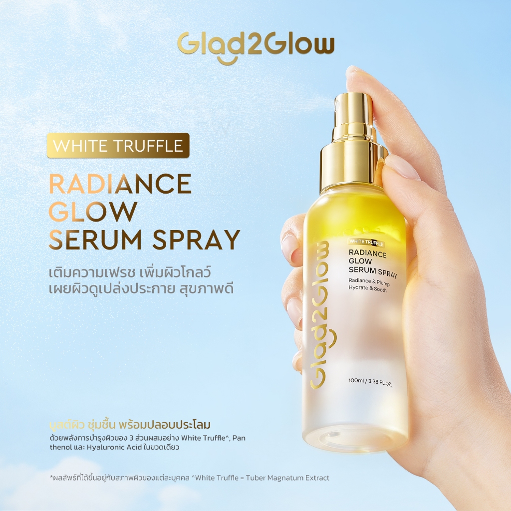 【NEW 100ML】Glad2Glow White Truffle Glow Serum Spray 3 in 1 ให้ความชุ่มชื้น ปลอบประโลมผิว และฟื้นฟู Essence เซรั่ม