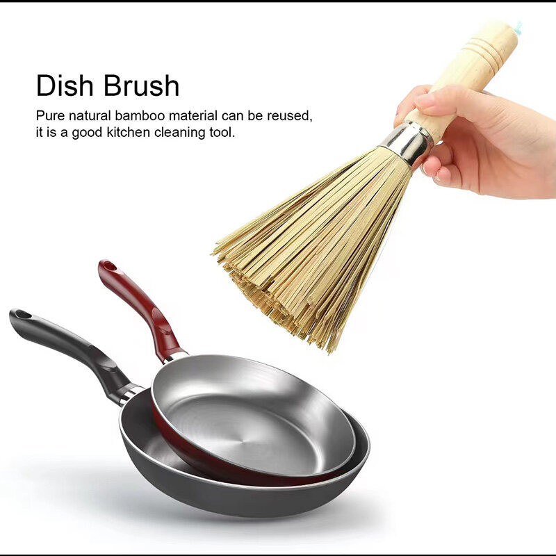 ZJ HOME【ลดล้างสต๊อก】แปรงล้างจานไม้ไผ่ ด้ามยาว แปรงล้างจาน หม้อ แปรงหม้อ เครื่องมือ
