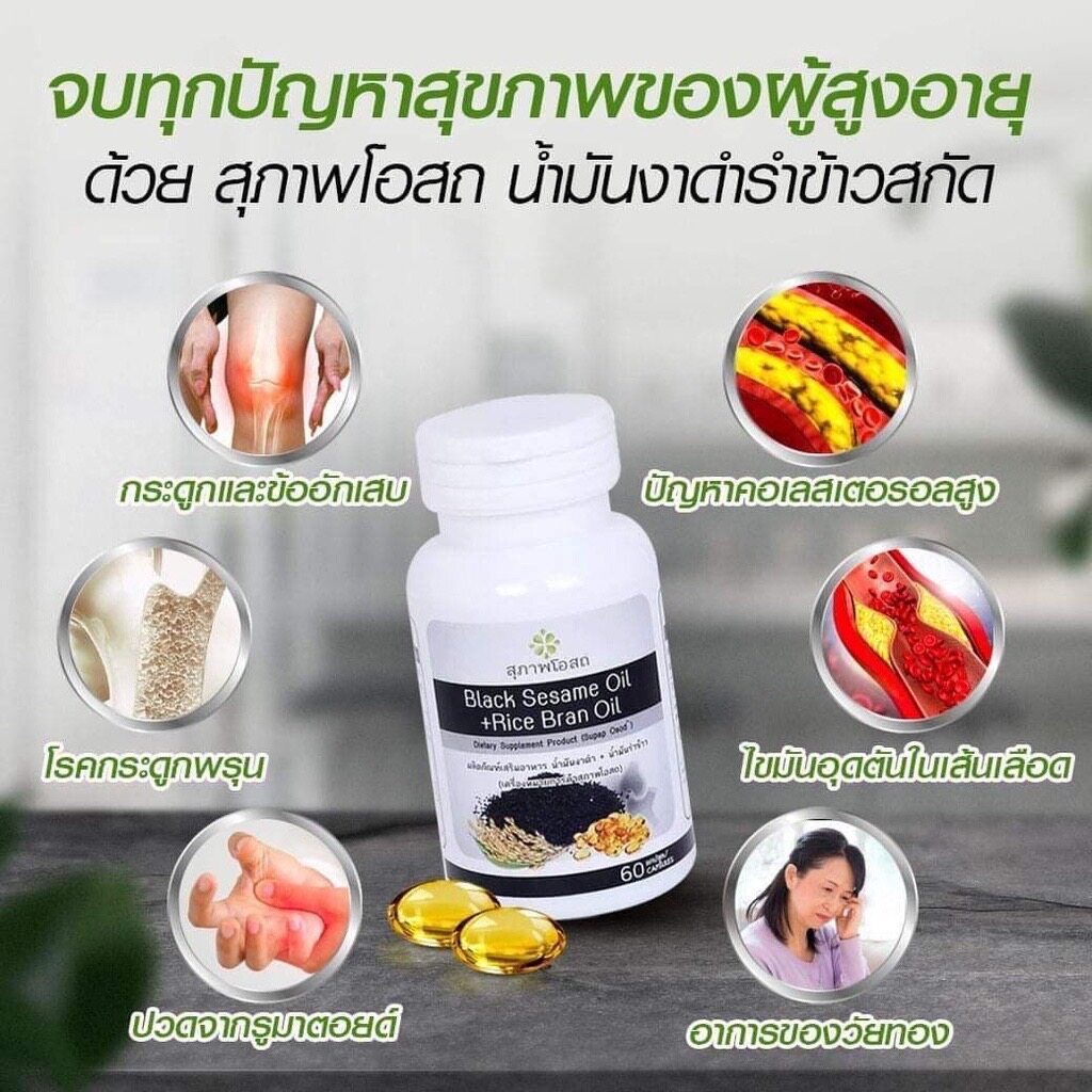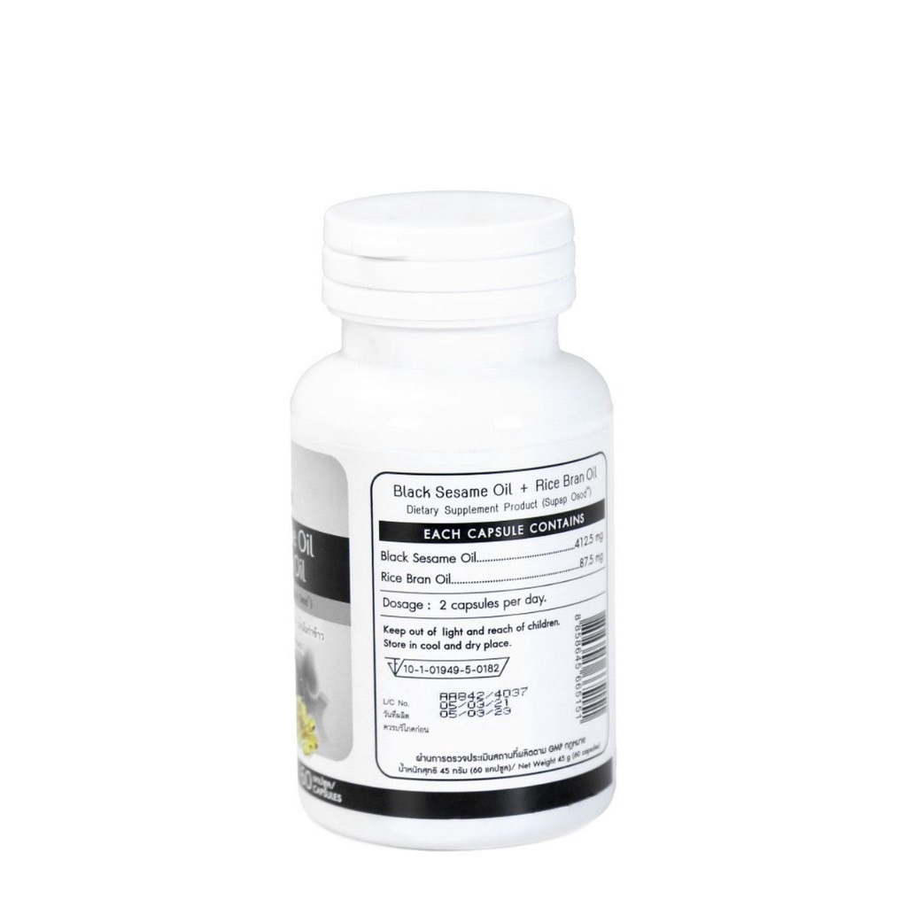 (ของเเท้100%) BLACK SESAME OIL+RICE BRAN OIL ผลิตภัณฑ์เสริมอาหารน้ำมันงาดำ+น้ำมันรำข้าว500 mg (ขนาด60ซอฟเจล)