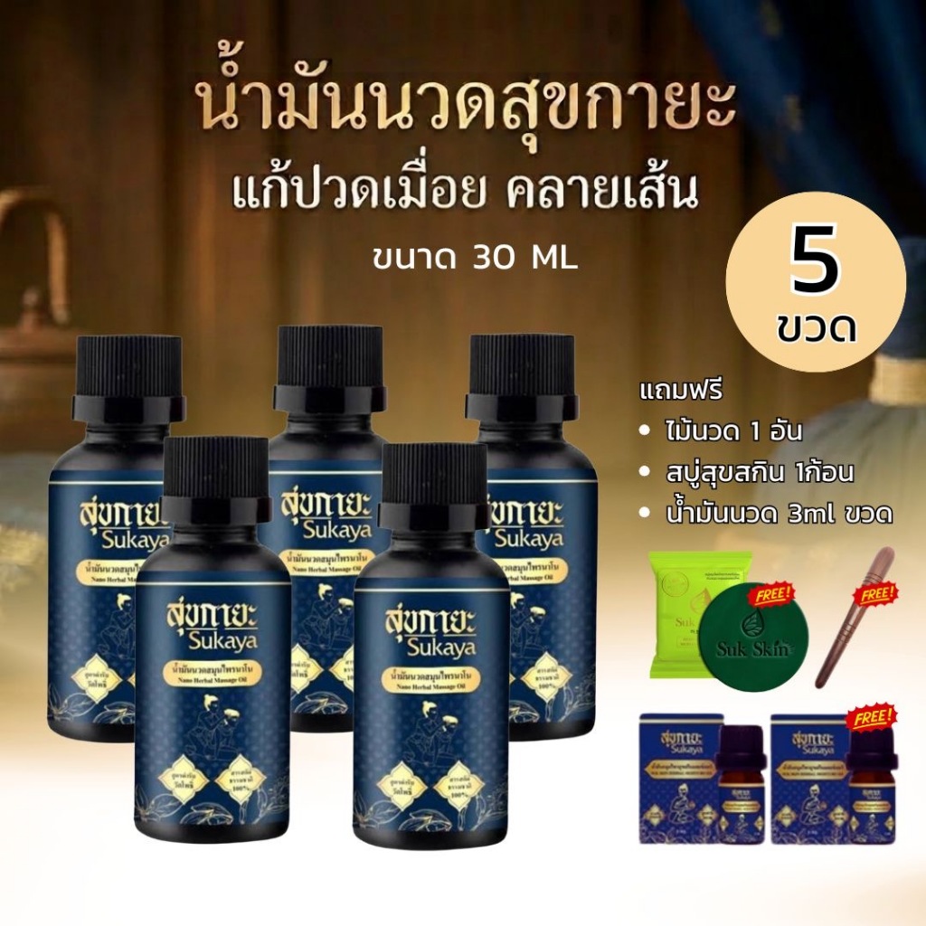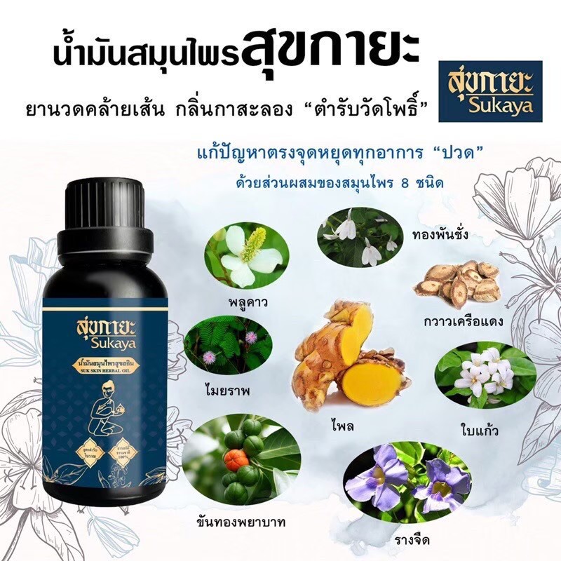 (5ขวด)SUKAYA น้ำมันนวดสุขกายะน้ำมันนวดนาโน แก้ปวดเมื่อยคลายเส้นกลิ่นกาสะลองผ่อนคลาย ตำรับ "วัดโพธิ์"