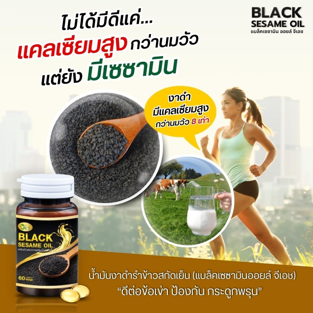 (ส่งฟรี!!) น้ำมันงาดำสกัดเย็น BLACK SESAME OIL แบล็คเซซามีออยล์จีเอส บำรุงกระดูก 60ซอฟเจล/1กระปุก