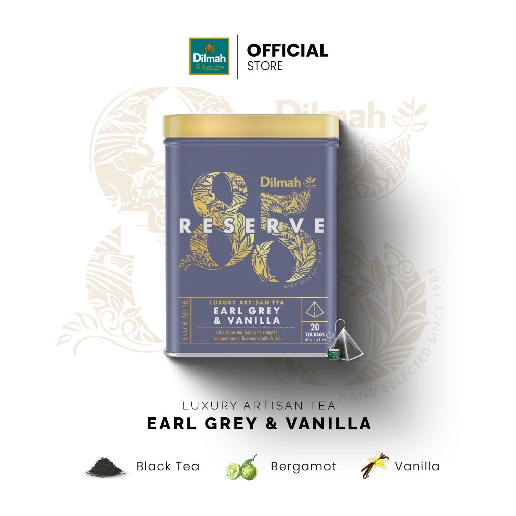 [รุ่นใหม่] Dilmah Tea 85 Reserve Earl Grey & Vanilla Ceylon Black Tea (20 Luxury Leaf Tea Bags)