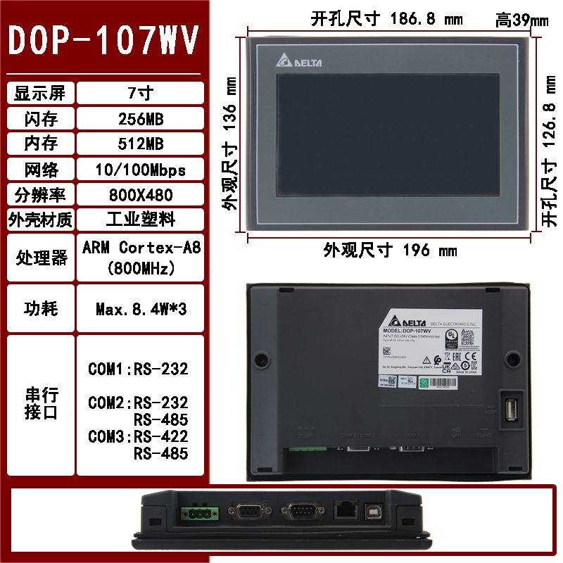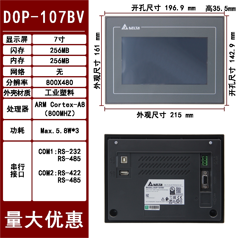 Delta หน้าจอสัมผัส 7 Inch DOP-107BV 107SV 103BQ 107CV 107DV 107EV 110CS