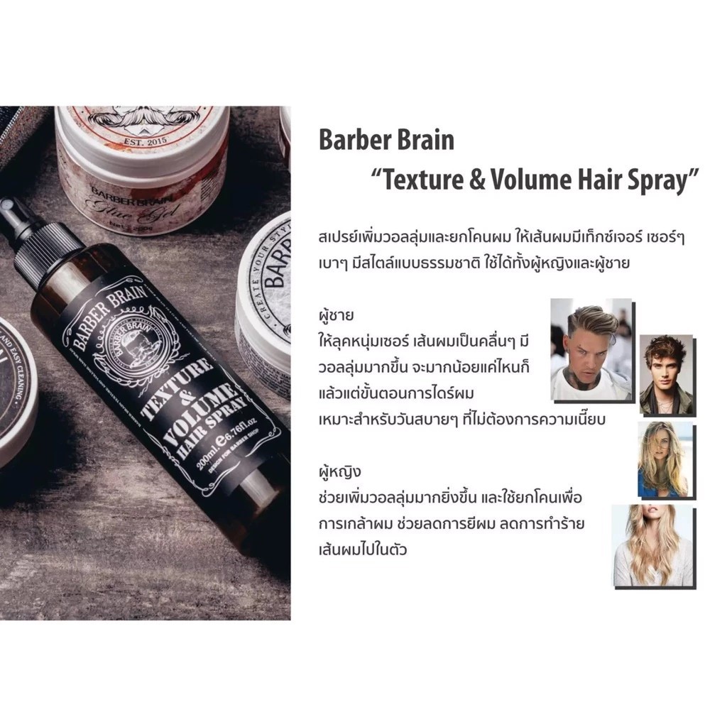 BARBER BRAIN ยกโคนผม สเปรย์ฉีดยกโคนผม บาร์เบอร์ เบรน เท็กซ์เจอร์ แอนด์ วอลลุ่ม แฮร์ TEXTURE AND VOLUME HAIR SPRAY 200 ml