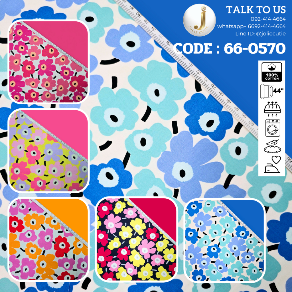 ผ้าคอตต้อนแท้/ผ้าฝ้ายแท้/ผ้าคอตต้อนป๊อบลิน/คอตต้อนคอมป์/cotton comb เกรดพรีเมี่ยมลายดอกไม้ 66-0570