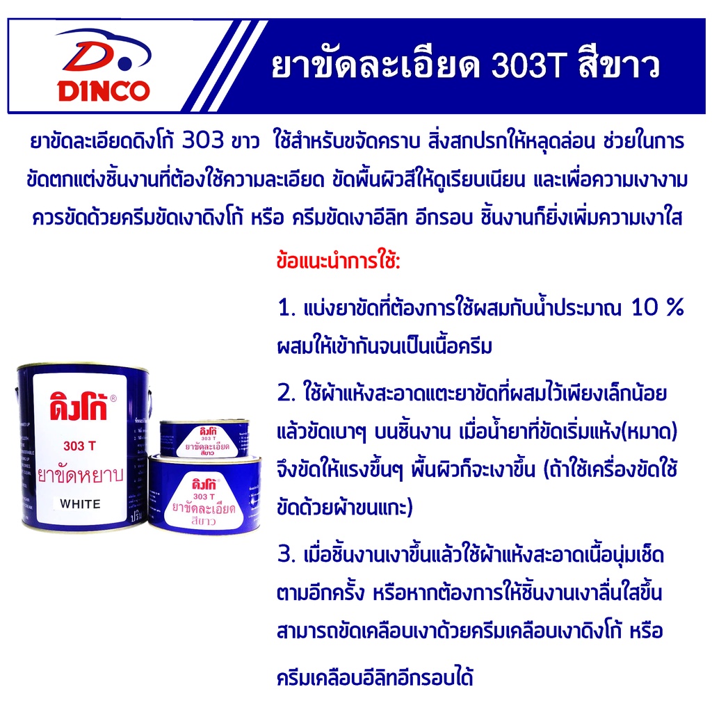 ยาขัดละเอียด ดิงโก้ DINCO 303 ขาว ขนาด 750g. ยาขัดละเอียดสีขาว ยาขัดสี ยาขัดสีรถยนต์ ครีมขัดละเอียด