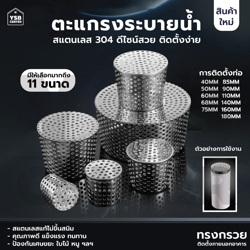ตะแกรงระบายน้ำ กันขยะ กันเศษใบไม้ หนู สแตนเลส 304 ( ทรงกรวย) CM0118 - CM0128