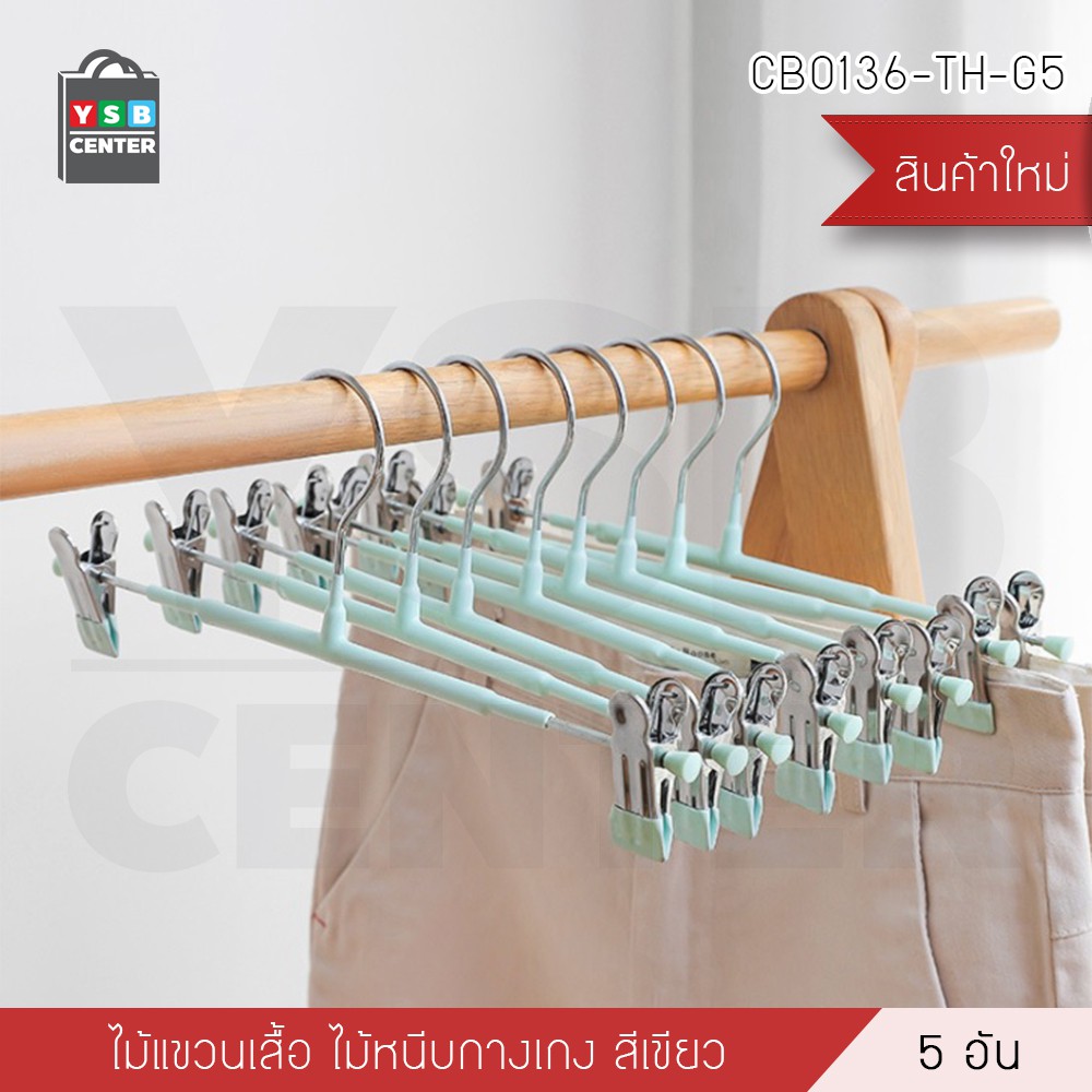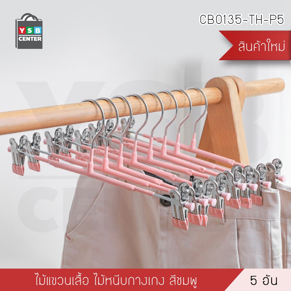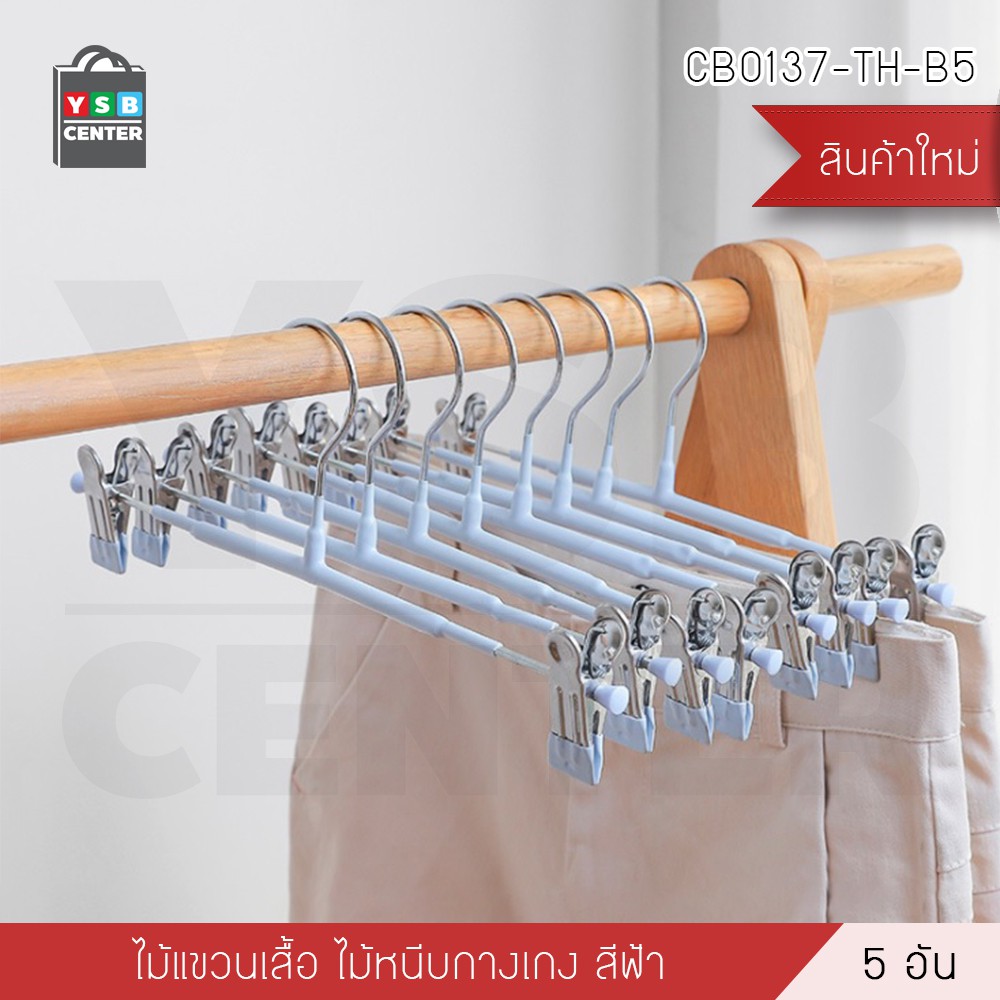 ไม้แขวน เสื้อกันลื่น พร้อมตัวหนีบ ไม่เป็นรอย ไม่เป็นสนิม แพค 5 ชิ้น