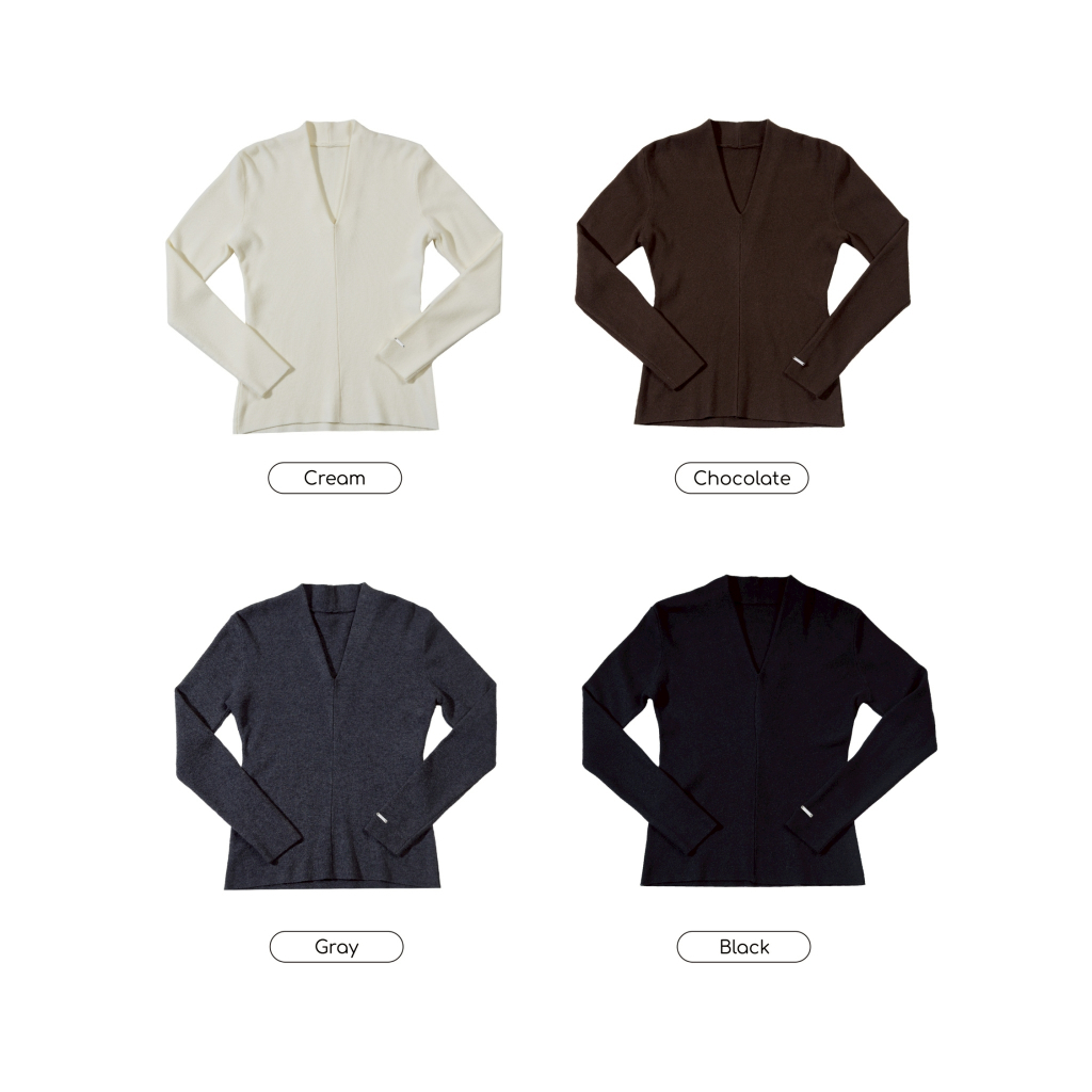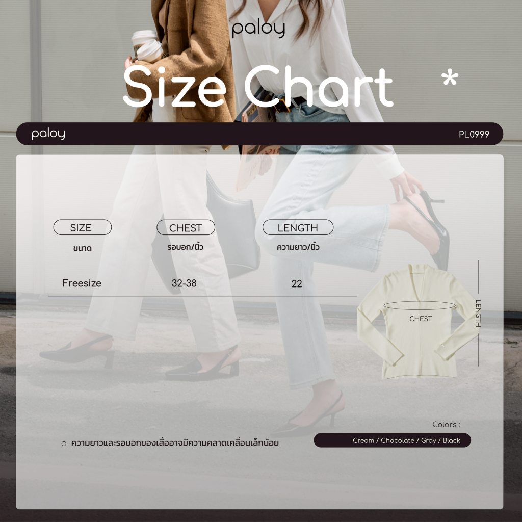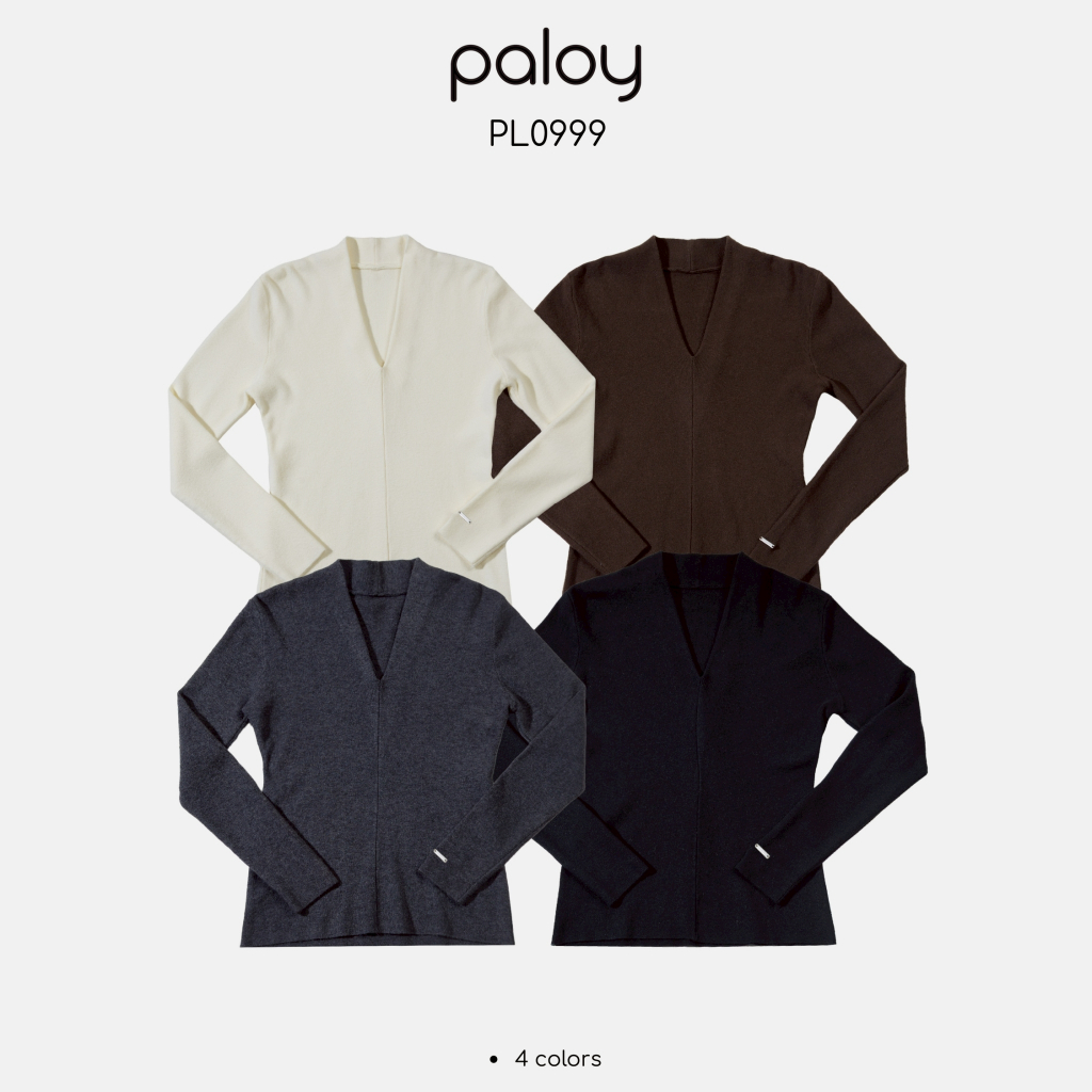 Paloy - PL0999 เสื้อไหมพรมแขนยาวคอวี สีพื้น