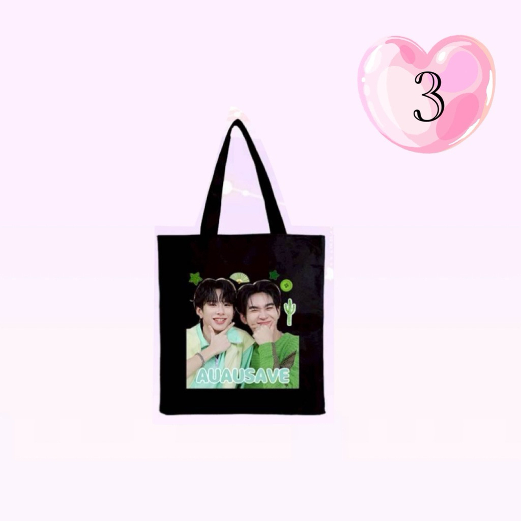 กระเป๋าผ้า อู๋อู่-เซฟ มีซิปสีดำ ลาย AUAUSAVE สวย6ลาย ขนาด 34x37 สินค้าพร้อมส่งจากในไทย