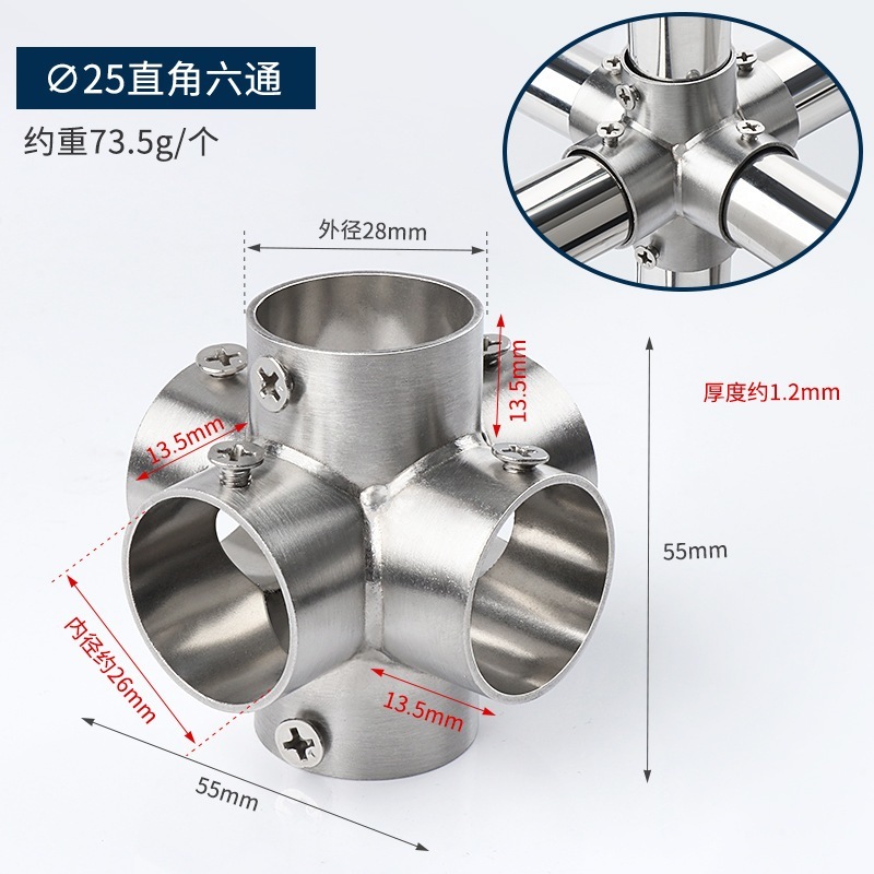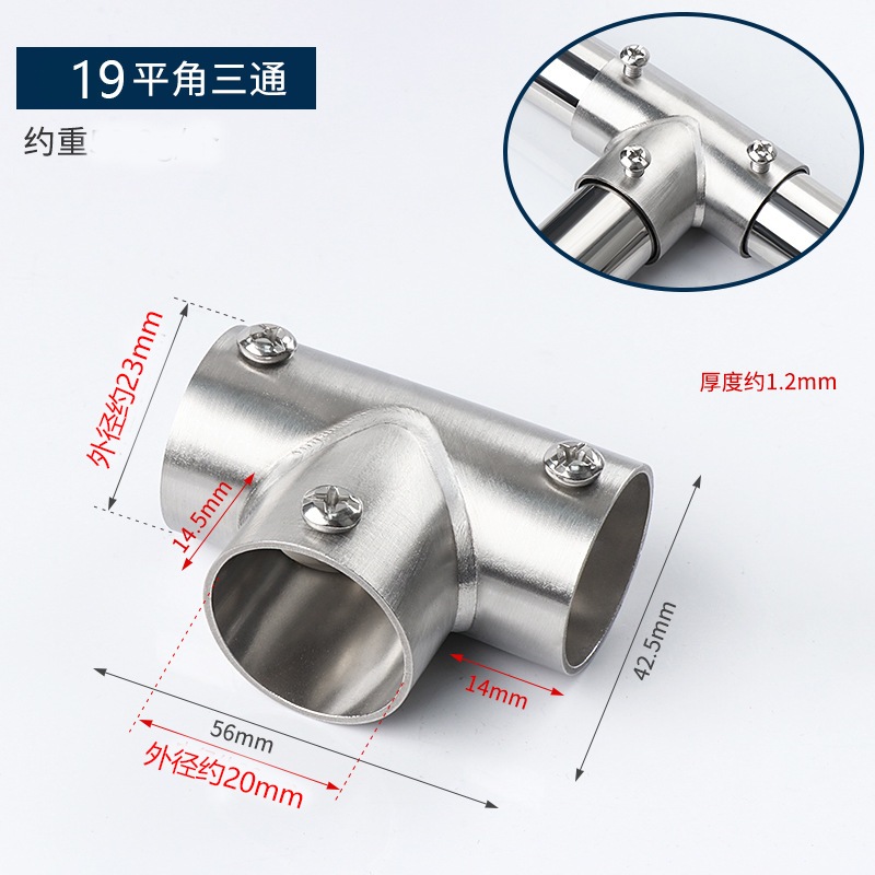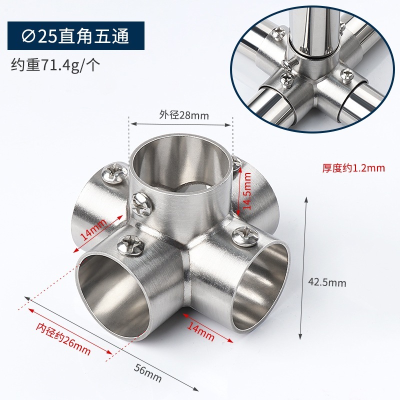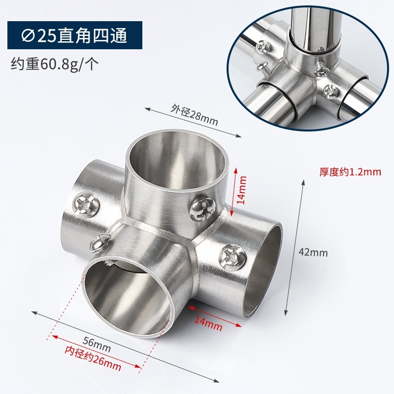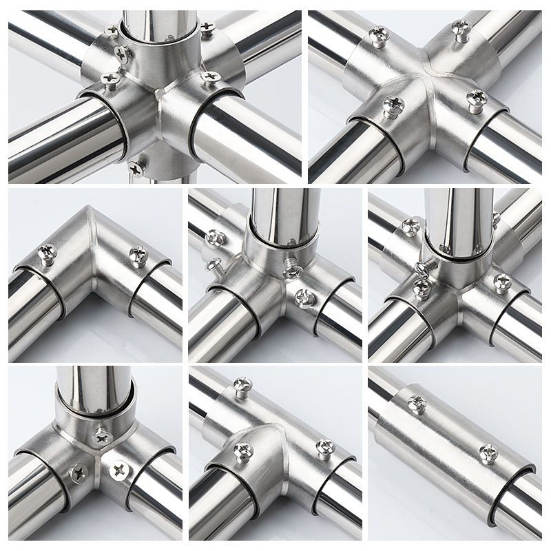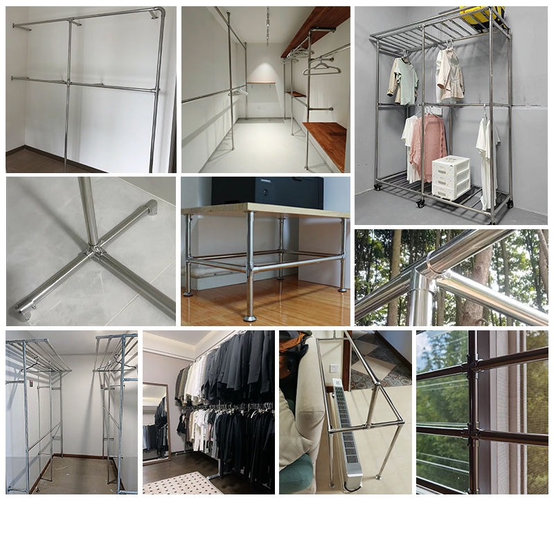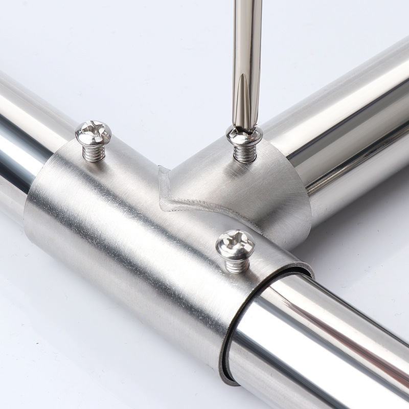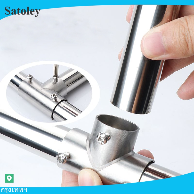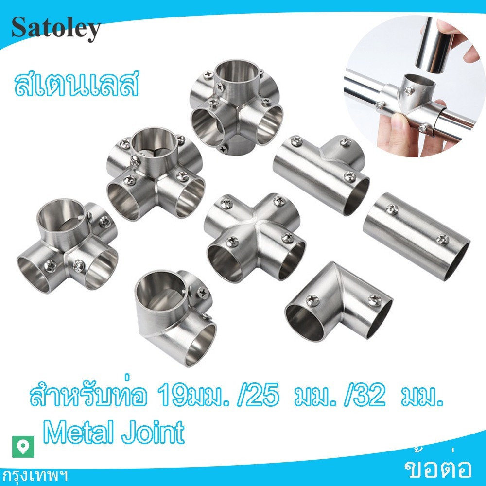 ข้อต่อเหล็ก ข้อต่อท่อ ไม่ต้องต๊าปเกลียว สแตนเลส กลม ขนาด 19มม. / 25มม. / 32มม. DIY สำหรับประกอบ ประกอบชั้นวาง ราวผ้า