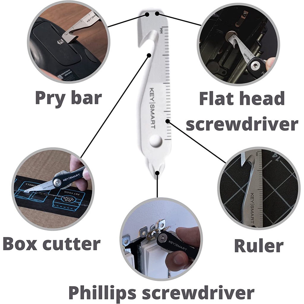 อุปกรณ์เสริมพวงกุญแจ KeySmart MultiTool - 5-in-1 Multi-Purpose Keychain Tool w Box Cutter, Ruler, Pry Bar etc USA Import