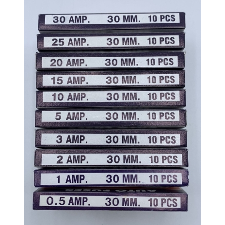ฟิวส์หลอดแก้ว(30 mm) 1A,2A,3A,5A,10A,15A,20A,25A,30A AUTO FUSES EAGLE SERIES (แพ็ค 10 ตัว)