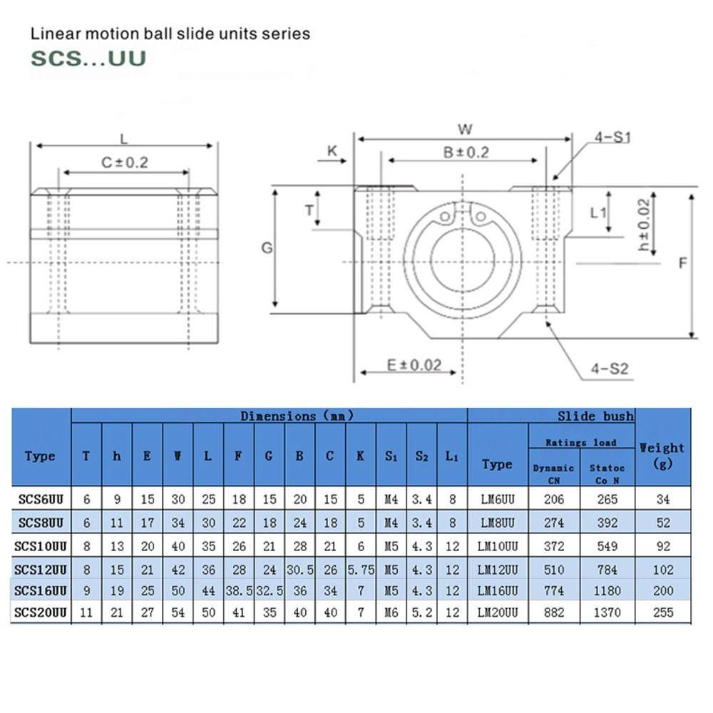 Hilda บล็อกบูชสไลด์, SCS16UU SCS20UU CNC Router Linear Ball Bearing, ทนทานอลูมิเนียม SCS8UU SCS10UU SCS12UU น้ําหนักเบา Guild Rail Shaft เครื่องพิมพ์เพลา Rod อะไหล่