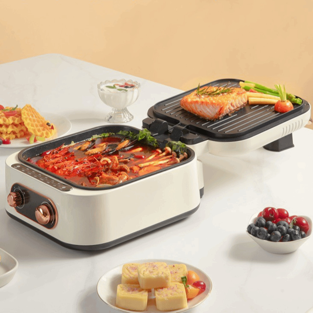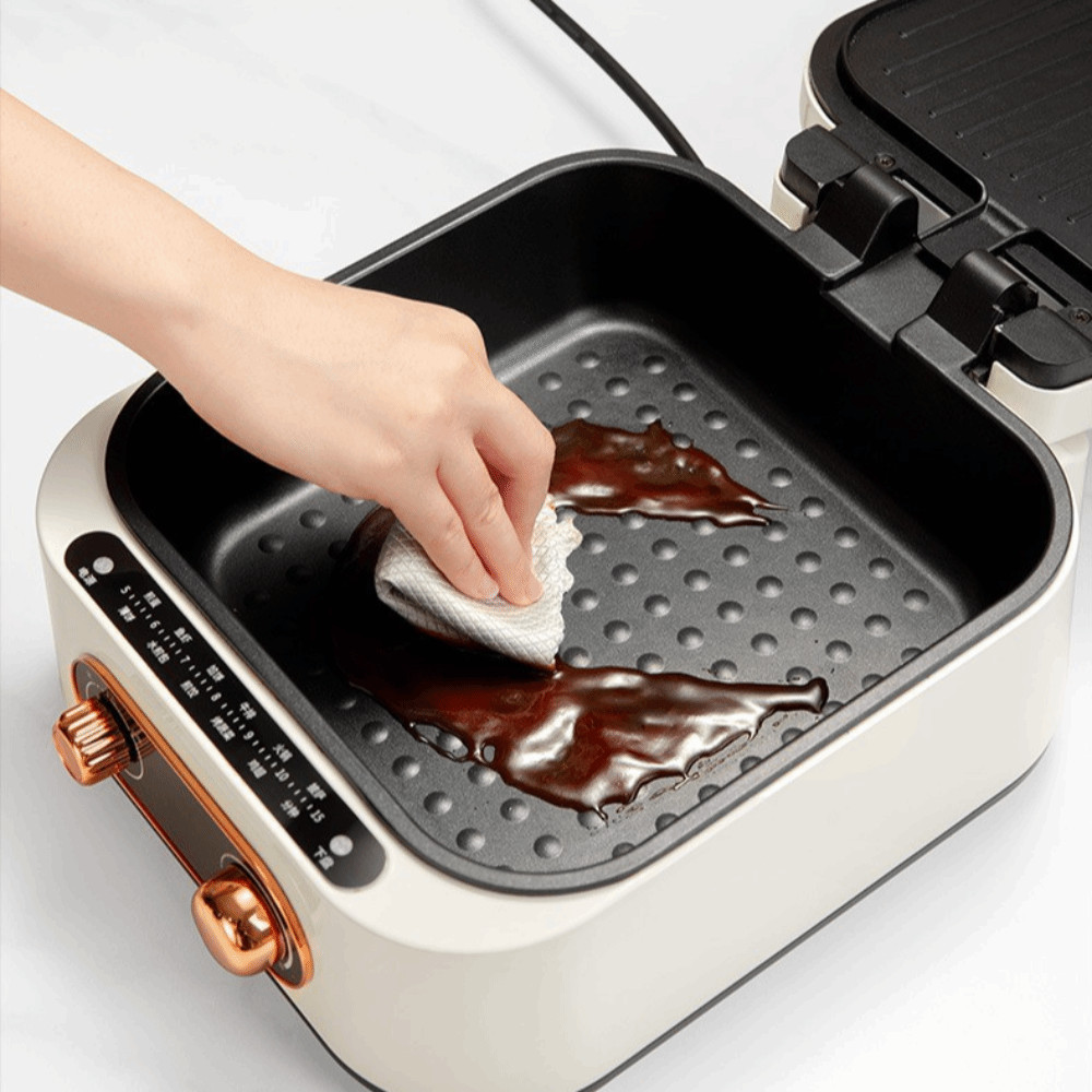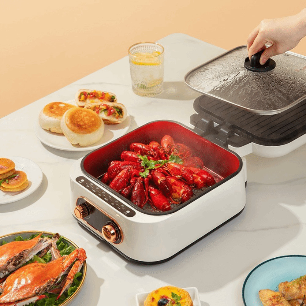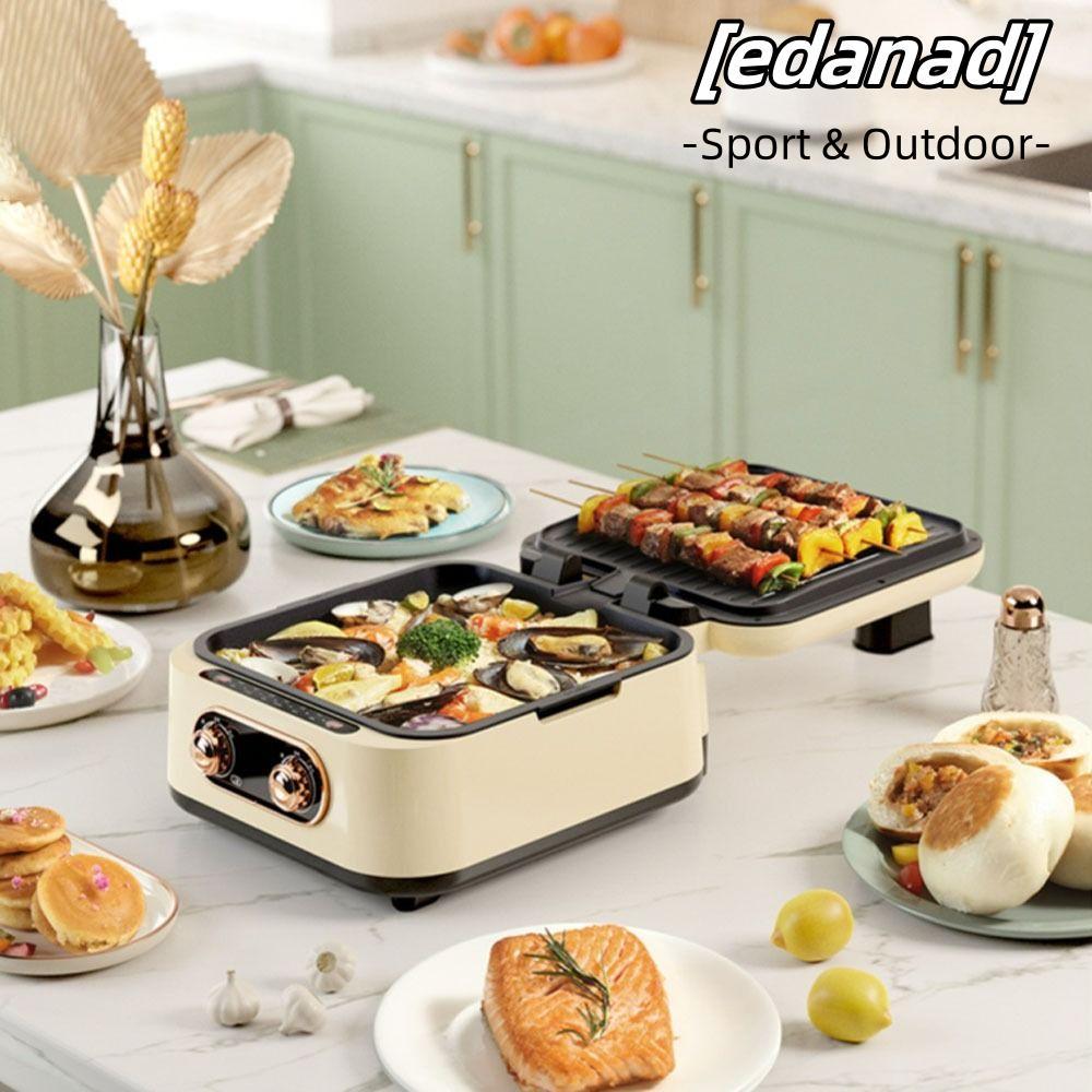เอ็ดนาด ถาดอบไฟฟ้าลึกพร้อมฝาปิดหม้อไฟไฟฟ้าอเนกประสงค์ความร้อนสองด้านไม่ติดแผ่นย่างบาร์บีคิวสหภาพยุโรปปลั๊ก