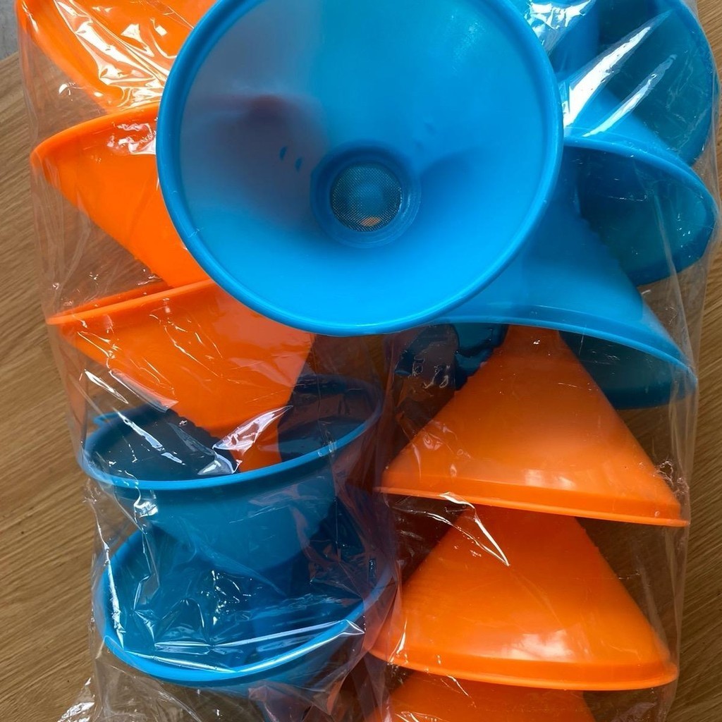 กรวยมีกลองพลาสติกคละสีขายยกโหล95-120บาทมี12ชิ้น