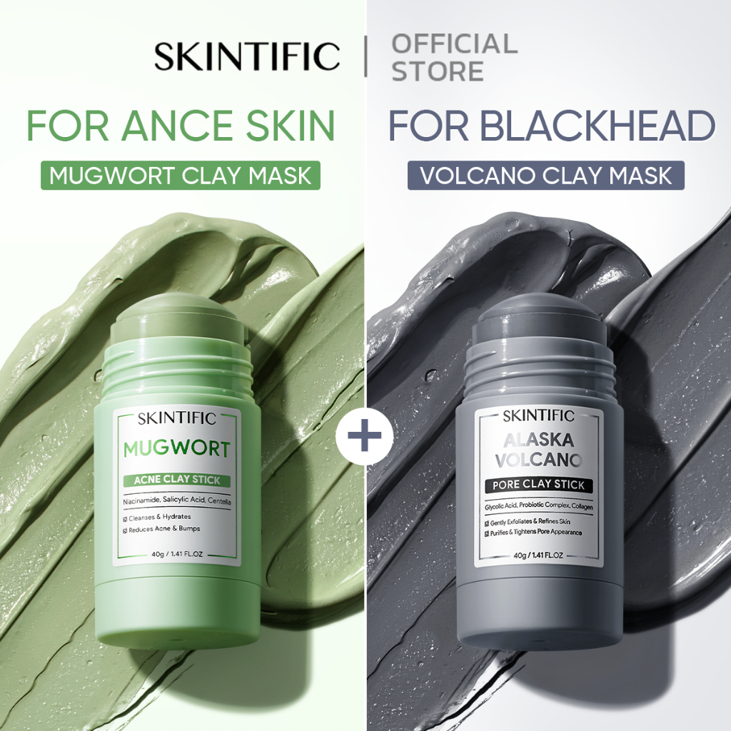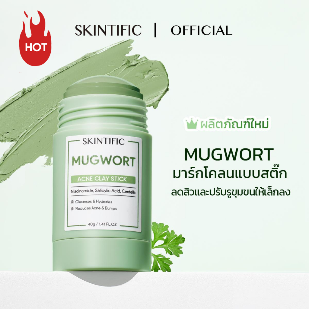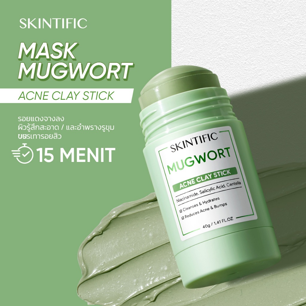 SKINTIFIC มาร์กโคลน Mugwort clay acne mask มาส์กโคลนแบบแท่งที่ช่วยเรื่องสิว 40g(ลดรอยแดง ลดการอักเสบ ที่ช่วยลดรูขุมขนและสิว)มาสก์หน้า มาสก์โคลน