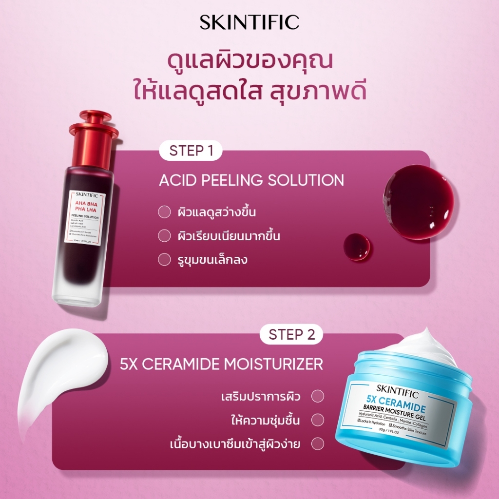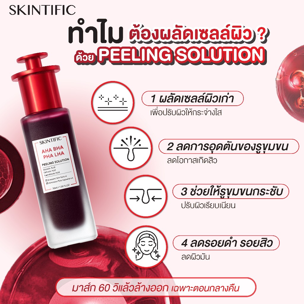 SKINTIFIC AHA BHA PHA LHA serum 30ML เซรั่ม ผลัดเซลล์ผิวใน 60 วินาที เซรั่มเพื่อการผลัดเซ ลล์ผิวที่มีส่วนผสมขอ