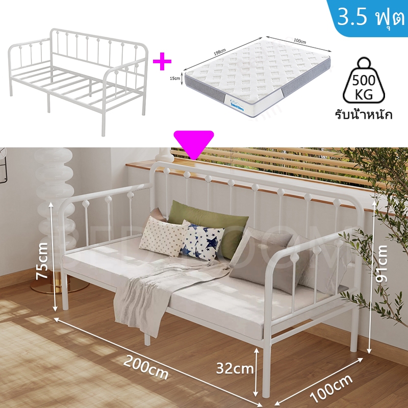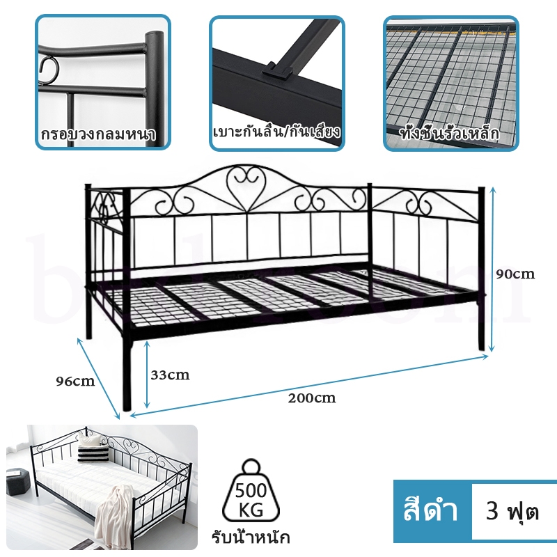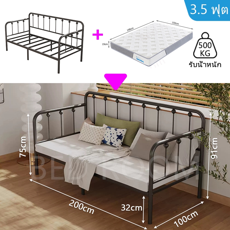 เตียงโซฟาโลหะ3.5 ฟุต/ 5 ฟุต /6 ฟุต วัสดุโลหะ แข็งแรง ทนทาน สําหรับห้องนอน เตียงเหล็ก