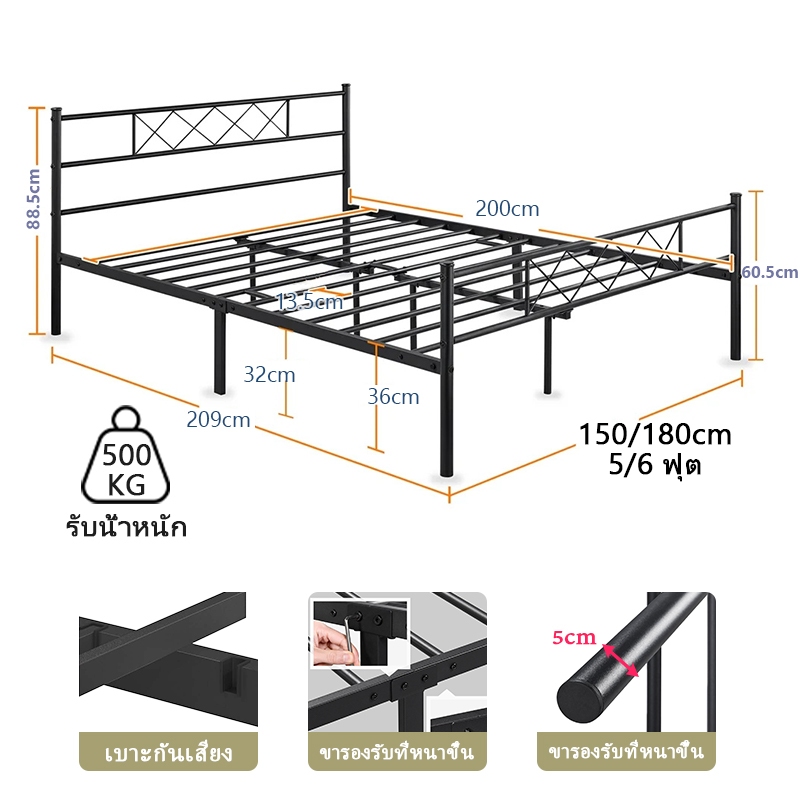 (การนำเข้า)เตียงเหล็ก3.5/5/6ฟุต เตียง เหล็กกลม เตียงเหล็กเรียบง่ายทันสมัย เตียงเหล็กหัวตรง แบบอย่างหนา รุ่น หัวเหลี่ยม เลือกได้ โครงเตียงแข็งแรง ใช้งานอย่างน้อย เตียง20ปี รุ่นหนา เตียงเหล็กแบบยุโรป[พร้อมส่ง]