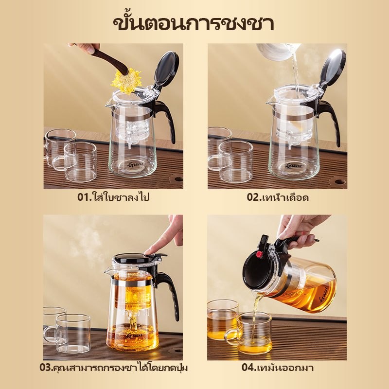 GIANXI【มีอยู่ในสต็อก】ชุดกาน้ําชา แก้ว ทนความร้อนสูง สไตล์จีน สําหรับชงชา [โปรสงกรานต์]